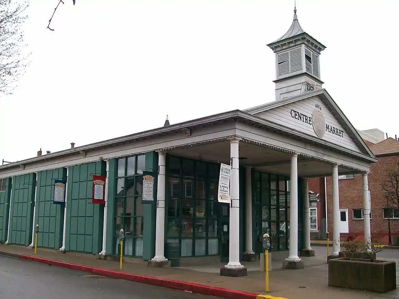 The Center Wheeling Market is a historic public market located along Market Street between 22nd and 23rd Streets in Wheeling, Ohio County, West Virginia. It consists of the Center Wheeling Market building as well as the Center Wheeling Fish Market. The 1853 Center Wheeling Market building was designed by architect Thomas Pope as an open market. The building is of neo-classical style with three bays and structural cast iron Doric order columns. It has a gable roof and features a belfry complete with bell. The 1890 open brick, neo-Romanesque section was designed by Wheeling architect Edward B. Franzheim. It has brick piers that support a hipped roof with cross gables and a three-foot overhang. In 1900, a wooden enclosure was built at the northern bay to house the Center Wheeling Fish Market. Read more on Wikipedia