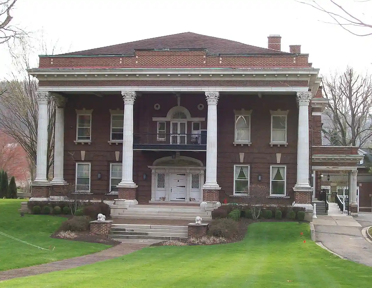 "Edemar", also known as Stifel Fine Arts Center, is a historic house and national historic district located at Wheeling, Ohio County, West Virginia. The district includes two contributing buildings and two contributing structures. The main house was built between 1910 and 1914, and is a -story, brick-and-concrete Classical Revival mansion with a steel frame. The front facade features a full-width portico with pediment supported by six Corinthian order columns. Also on the property are a contributing brick, tiled-roofed three-bay carriage barn/garage; fish pond; and formal garden. The Stifel family occupied the home until 1976, when the family gave it to the Oglebay Institute to be used as the Stifel Fine Arts Center. Read more on Wikipedia