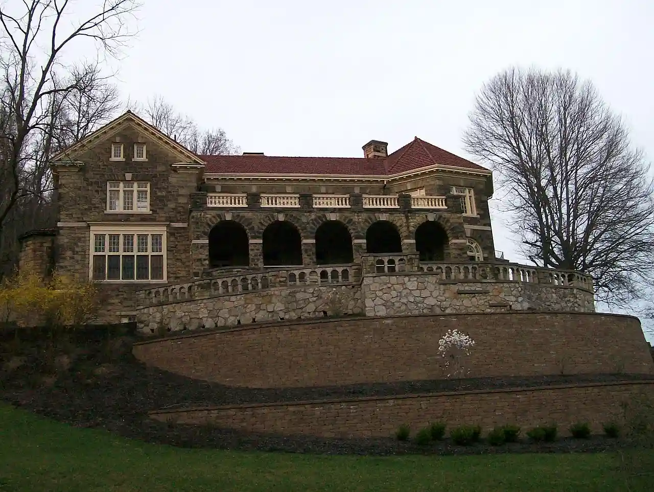 Johnson Camden McKinley House, also known as "Willow Glen," is a historic home located at Wheeling, Ohio County, West Virginia. It was built between 1914 and 1920, and is a -story massive dwelling built of ashlar sandstone. It consists of two wings that meet at right angles to form an L-shaped building. The front elevation features a balustraded, one-story loggia that encloses a broad verandah above the piazza. The interior has a two-story entrance rotunda, a grand salon, an English-style library and 30 or so additional chambers. The house was built for coal baron Johnson Camden McKinley and his wife Agra Bennett McKinley. Read more on Wikipedia