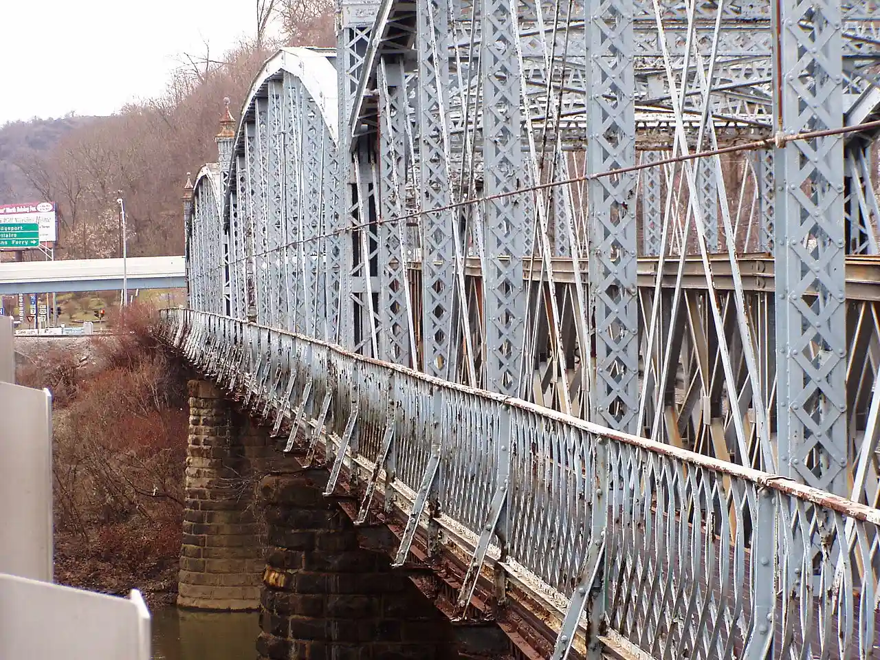 The Military Order of the Purple Heart Bridge (originally referred to as the Bridgeport Bridge, or officially as the Wheeling and Belmont bridge as per the dedication plaque affixed to the original structure) is a bridge that carries U.S. RouteĀ 40 (USĀ 40) over the back channel of the Ohio River between Wheeling Island, West Virginia, and Bridgeport, Ohio. Read more on Wikipedia