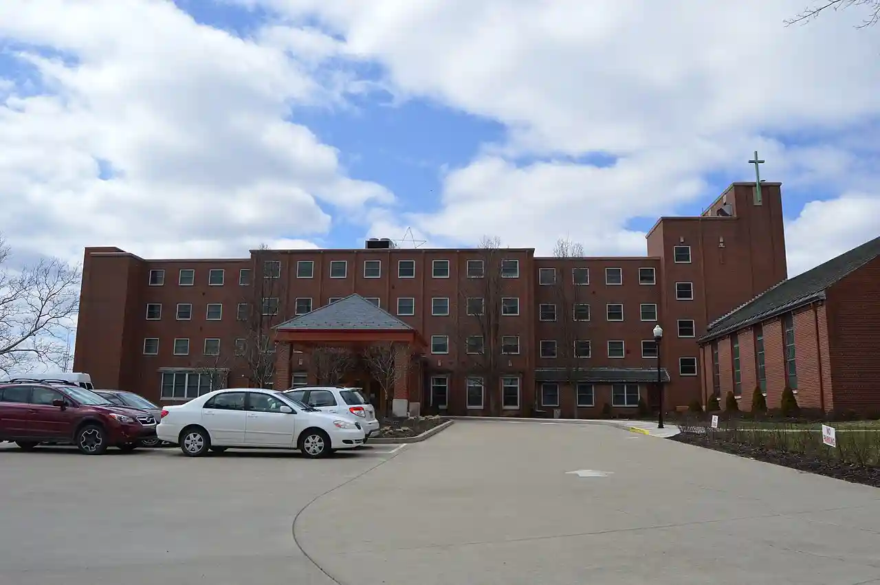 Mount Saint Joseph, also known as Holloway Estate, is a historic house and motherhouse located near Wheeling, Ohio County, West Virginia. The Holloway House was built in 1854; the original farmhouse is two stories and measures 35 feet by 45 feet. In 1917 it was purchased by W. W. Holloway (1886-1969), the son of prominent Wheeling businessman John Jacob Holloway. W. W. Holloway had married into the Whitaker iron family in 1911 by his marriage to Margaret Louise Glass. They made two additions to the house in the 1920s; one with a garage and apartment above, and an L-shaped addition which became the main living quarters. Located on the property is an immense, three winged structure built as the motherhouse for the Sisters of St. Joseph. It is a Modern building built in 1954–1956. Also on the property are a contributing cold storage building, spring house, and bathhouse. Read more on Wikipedia