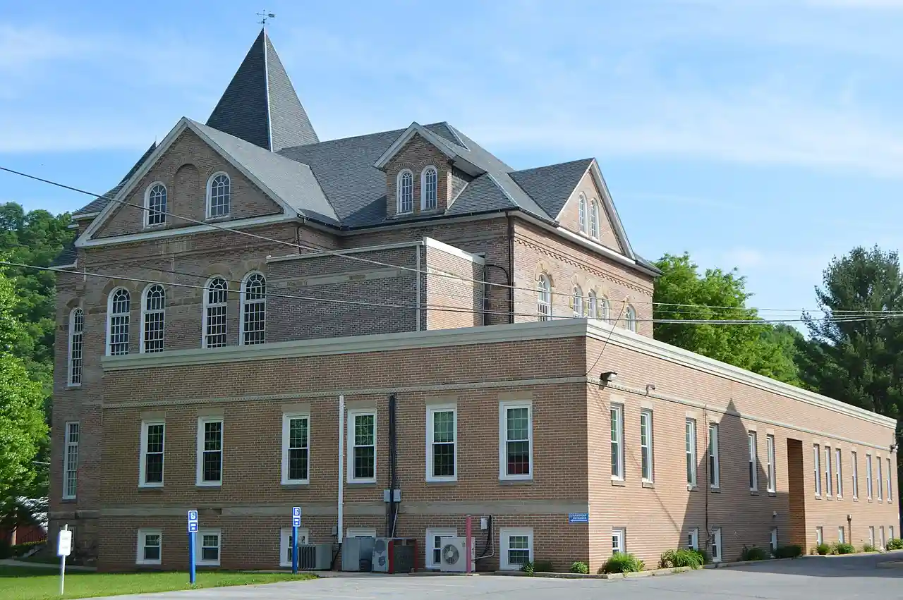Pocahontas County Courthouse and Jail is a historic courthouse and jail located at Marlinton, Pocahontas County, West Virginia. The courthouse was built in 1894, and is a 2 1/2-story, brick, Victorian Romanesque building with a stone raised basement level. It has irregular massing with a central block that has a steep hip roof. The front elevation features two towers, one at each corner. A courthouse annex building was added in 1976. The jail is a two-story brick building in simple Romanesque Style. It was built at the same time as the courthouse as the jailer's residence. A brick two-story shallow hip roofed ell was added in 1926, to house the jail. Read more on Wikipedia