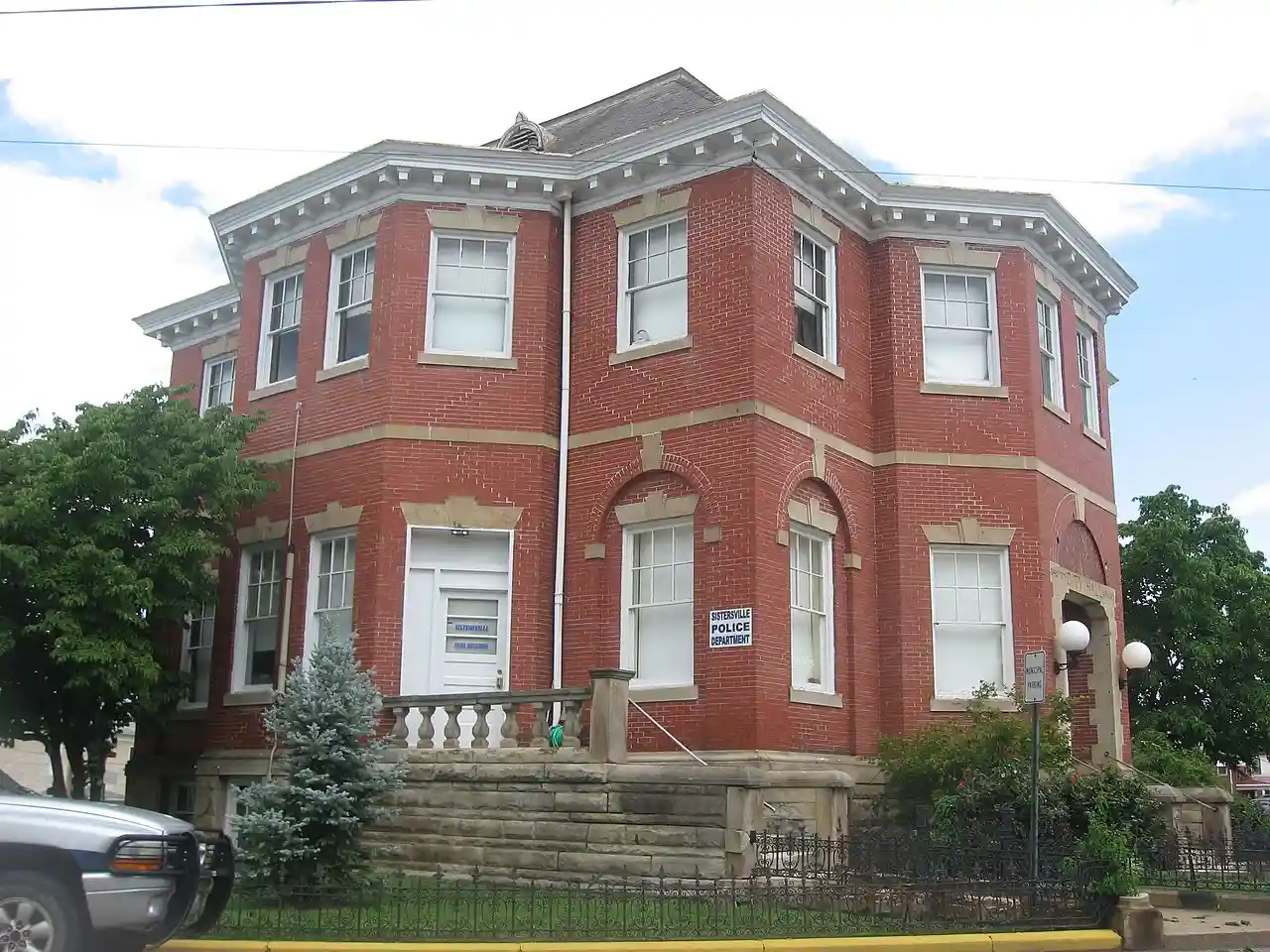 Sistersville City Hall, also known as the City Building, is a historic city hall located at Sistersville, Tyler County, West Virginia. It was built in 1897, and is a two-story red brick and stone building. The 16 sided unique building features centrally located, three-sided bay windows on each section. The building at one time housed the city jail. Read more on Wikipedia