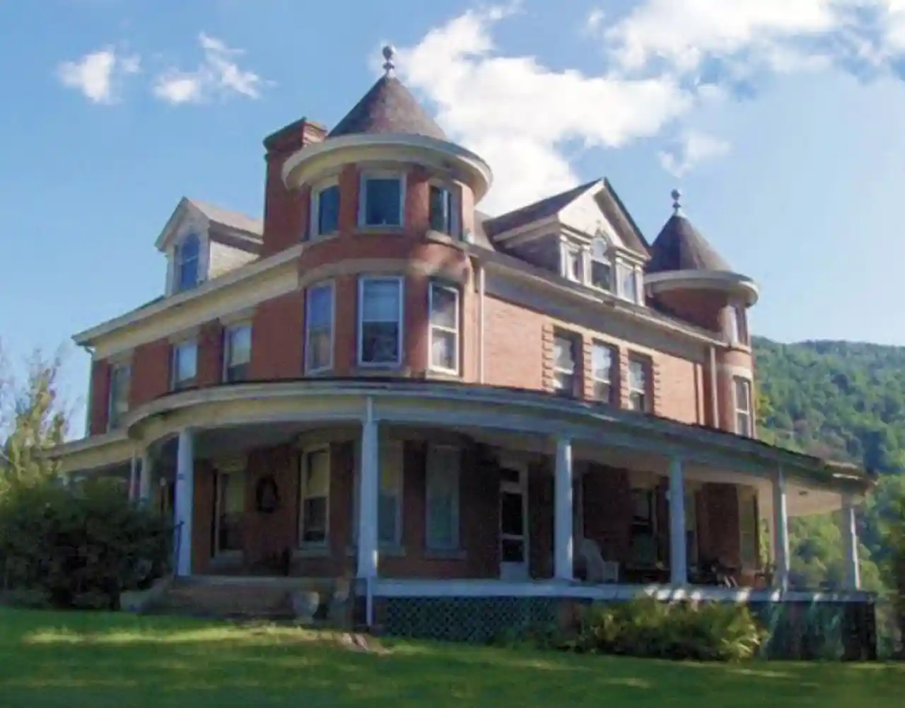 Morton House, also known as Morton Mansion, is a historic home with Queen Anne style located at Webster Springs, Webster County, West Virginia that dates to 1912. It is a massive red brick dwelling set on a solid stone foundation, with a hipped roof and features a pair of -story turrets and each is topped with a conical shingled roof and capped with wooden finials. It also has a wraparound porch around 3/4 of the house. Read more on Wikipedia