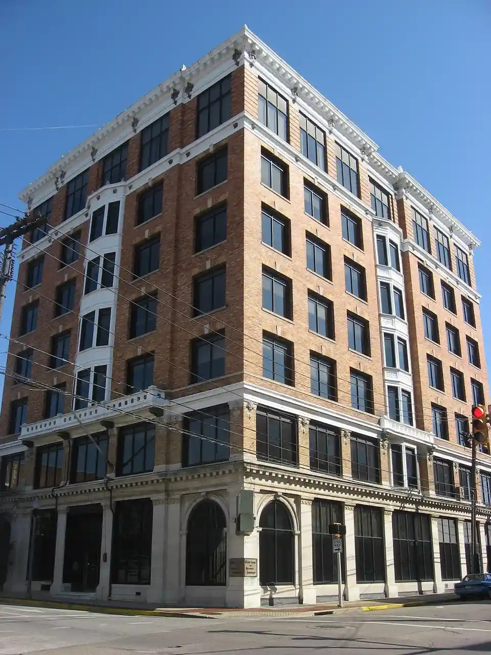 The Union Trust National Bank, also known as the Union Trust and Deposit Company, is a historic bank building located at Parkersburg, Wood County, West Virginia. It was built in 1903–1904, and is a seven-story, five bay by seven bay, U-shaped, masonry building in the Classical style. The central bay features a projecting three-sided bay window. The building was ordered by Senator Johnson N. Camden (1828-1908). Read more on Wikipedia