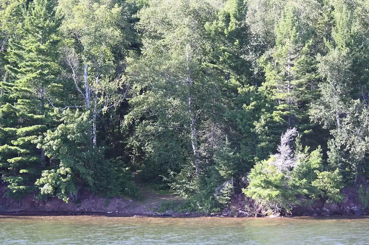 The Bass Island Brownstone Company Quarry, also known as the Basswood Island Quarry, on Basswood Island in Lake Superior was operational from 1868 to 1893. The brownstone was first used for construction of the second Milwaukee County Courthouse, now demolished. The quarry, now filled with water, is about long and about deep. Blocks of sandstone remain, together with the rusting remains of quarrying machinery. All company buildings and workers' cabins have disappeared. Read more on Wikipedia