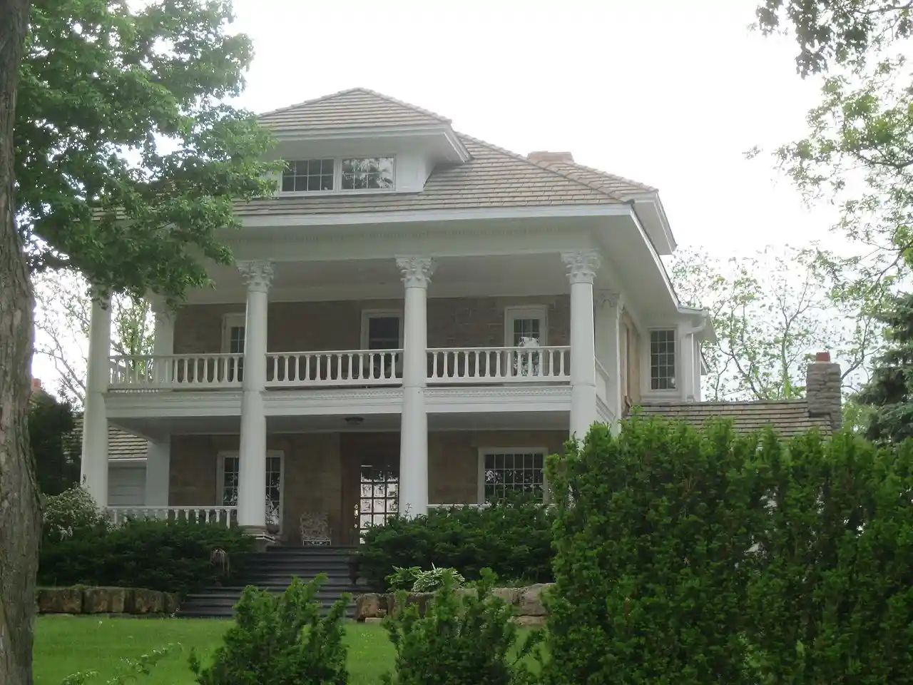 The Dunroven House is a historic house at 7801 Dunroven Road northeast of the village of Dane, Wisconsin. The house was built in 1870 by Abram Asa Boyce, a farmer and politician who served in the Wisconsin State Legislature and chaired the Dane County Board of Supervisors. Boyce's original house, which he named Walnut Hill, was a two-story sandstone building. E. W. de Bower purchased the house in 1909 and expanded it into a Colonial Revival home that was much larger than others in the area. The house's design features a full portico on the front facade supported by four two-story Corinthian columns and hipped dormers projecting from the roof. de Bower, who lived in Chicago and hired locals to raise cattle on the property, named the new house Mont-Joy in honor of his wife. Read more on Wikipedia