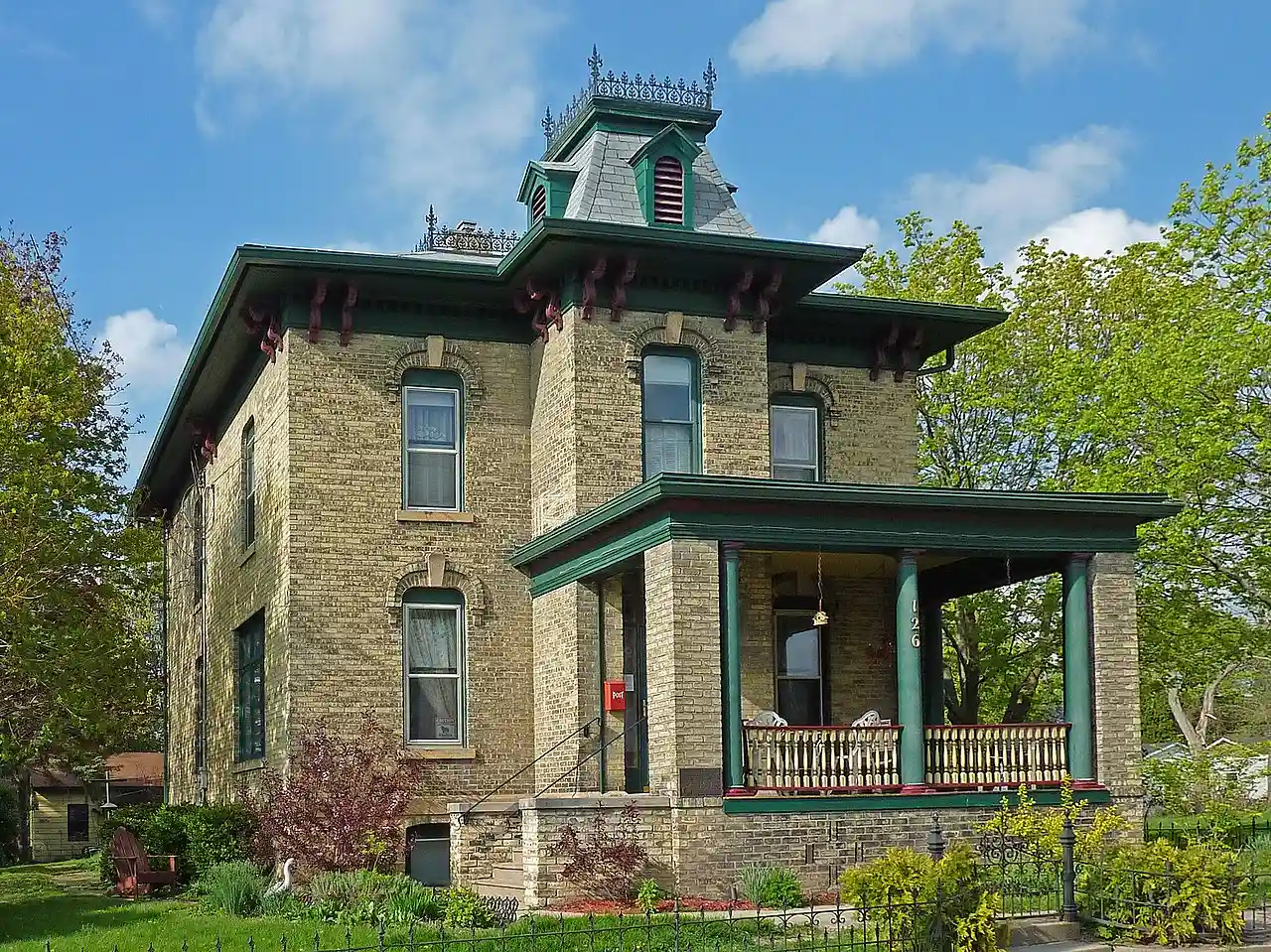 The Jens Naeset House is an Italianate/Second Empire house built in 1878 in Stoughton, Wisconsin by Norwegian immigrant builder Naeset for his own family. In 1985 it was listed on the National Register of Historic Places. Read more on Wikipedia