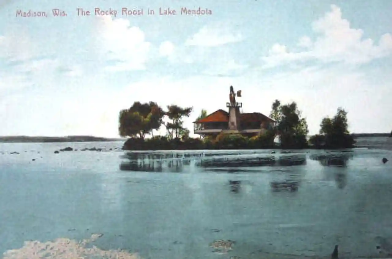 The Robert M. Lamp Cottage, also known as Rocky Roost, was a summer cottage on a small island on Lake Mendota in Madison, Wisconsin. The cottage was designed by architect Frank Lloyd Wright for boyhood friend, Robert M. Lamp (1866–1916), for whom Wright also designed the Lamp House in Madison. Read more on Wikipedia