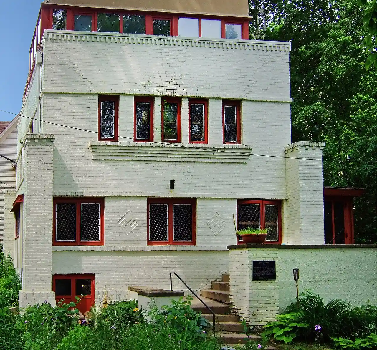 The Robert M. Lamp House is a residence built in 1903 two blocks northeast of the capitol in Madison, Wisconsin, designed by Frank Lloyd Wright for his lifelong friend "Robie" Lamp, a realtor, insurance agent, and Madison City Treasurer. The oldest Wright-designed house in Madison, its style is transitional between Chicago School and Prairie School. In 1978 the house was added to the National Register of Historic Places. Read more on Wikipedia