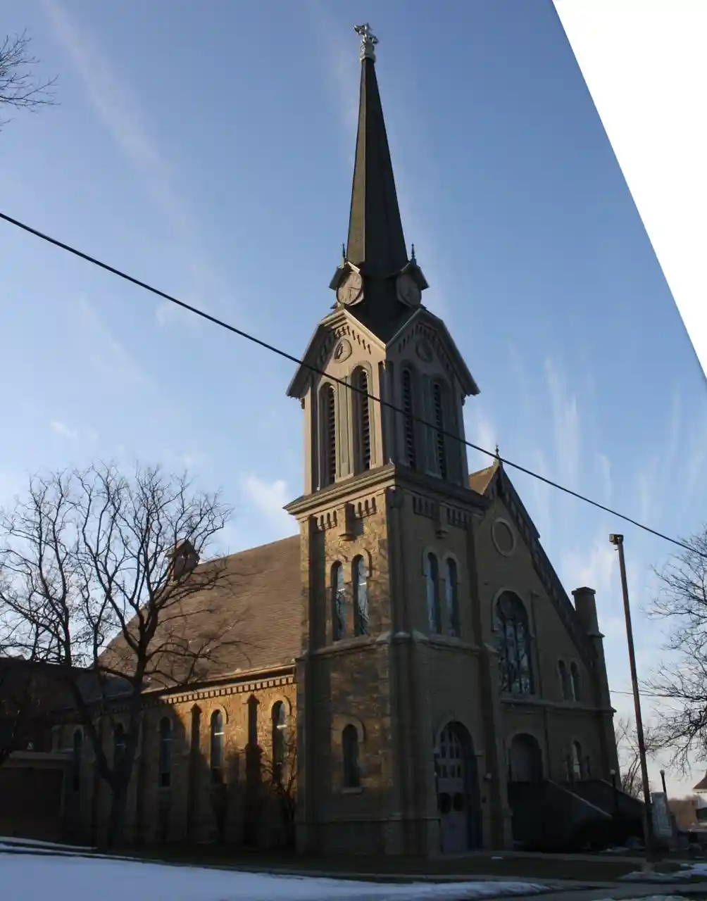 First Congregational Church is located in Ripon, Wisconsin. The church was built in the Romanesque Revival architecture style between 1865 and 1868. It was designed by E. Townsend Mix. On September 4, 1979, it was added to the National Register of Historic Places for its architectural significance. Read more on Wikipedia