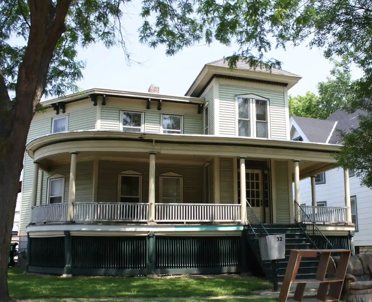 The Wallace-Jagdfeld Octagon House built in 1860 is a historic octagonal house located at 171 Forest Avenue in Fond du Lac, Wisconsin. The two-story home features clapboard siding, a front porch, and a central chimney. Read more on Wikipedia