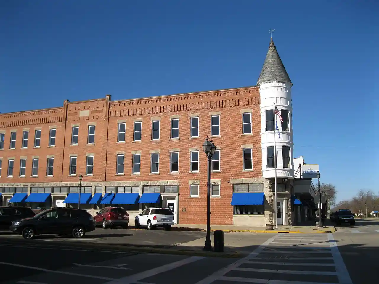 The Exchange Square Historic District is a commercial historic district in downtown Brodhead, Wisconsin. The district contains thirty-eight buildings, thirty-five of which are considered contributing buildings to its historic character. Brodhead was platted as a railroad town in 1856 by the Milwaukee and Mississippi Railroad, and the oldest building in the district, the Farmer's Hotel, was completed the same year. The original railroad depot burned down, but its 1885 replacement still stands and is included in the district. Both Brodhead and its commercial district grew steadily through the late nineteenth and early twentieth centuries; every contributing building was completed by 1930. The district includes several examples of the Italianate and Queen Anne architectural styles, which were popular in the late nineteenth century, as well as many vernacular commercial buildings. Read more on Wikipedia
