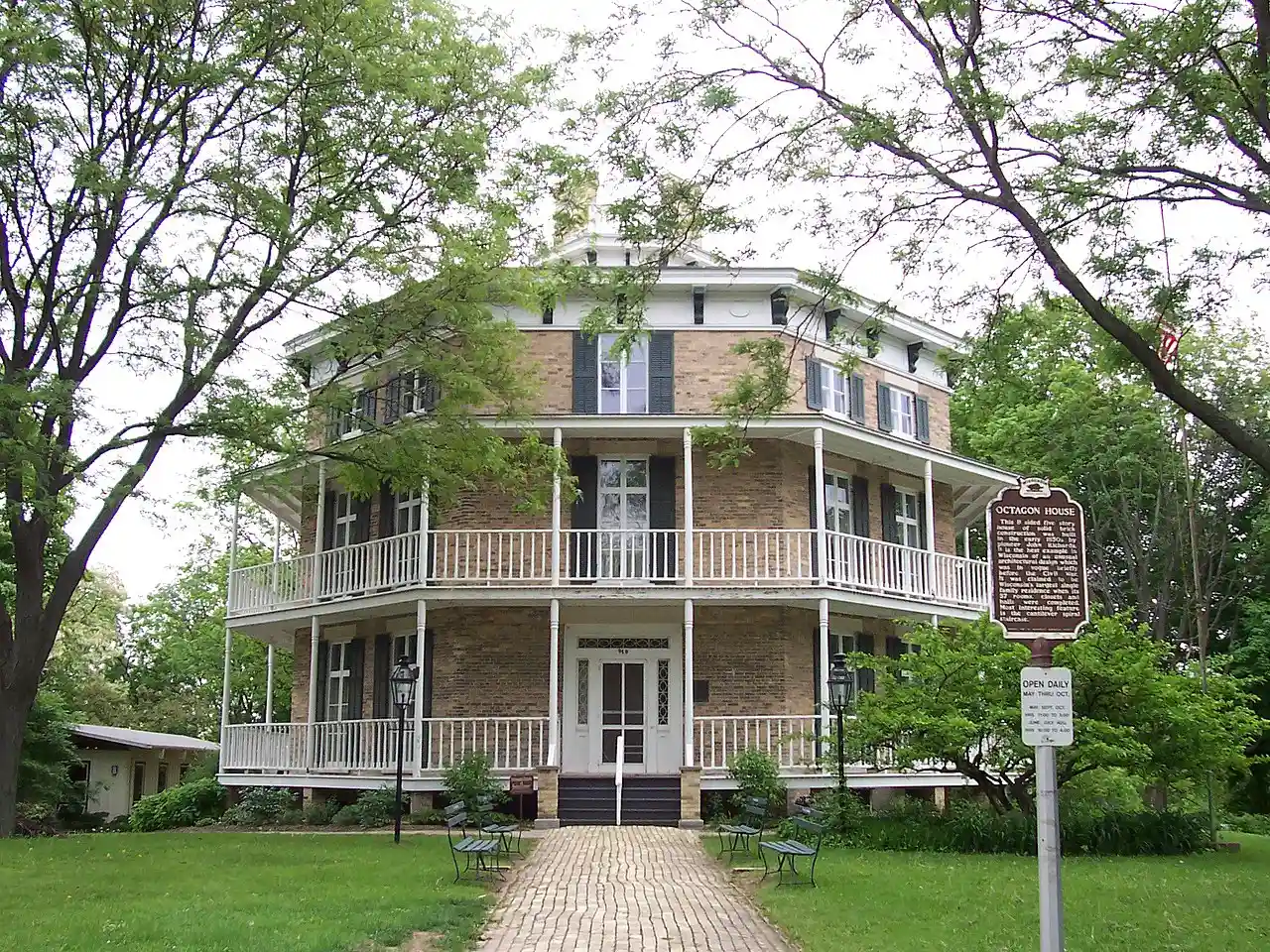 The Octagon House in Watertown, Wisconsin, also known as the Octagon House Museum or the John Richards Octagon House, was built in 1854 and was listed on the National Register of Historic Places in 1971. It is one of many octagon houses built in the United States in the mid-19th century. In 1950 architect Rexford Newcomb wrote, "...probably the best-planned octagon house in the country is the John Richards House at Watertown, Wisconsin..." Read more on Wikipedia