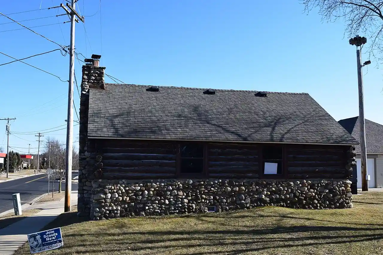 The Palmyra Boy Scout Cabin is a log cabin at 105 N. 1st Street in Palmyra, Wisconsin. Palmyra's Boy Scout Troop 14 built the cabin from 1935 to 1937. At the time, building a troop cabin was a popular activity for Boy Scouts and encouraged by the national organization; the Boy Scout Handbook included instructions on how to build a cabin, and Boys Life magazine featured completed cabins. Scouts and their fathers built the cabin; the Palmyra cabin took two years to complete on account of the Great Depression, which limited the troop's funds for building supplies, and many of the cabin's materials were donated. The one-room cabin measures and uses saddle notch corners, which are designed to tighten over time as the building settles. The Boy Scouts have used the cabin continuously since it was built, and the cabin was renovated in the 2000s. Read more on Wikipedia