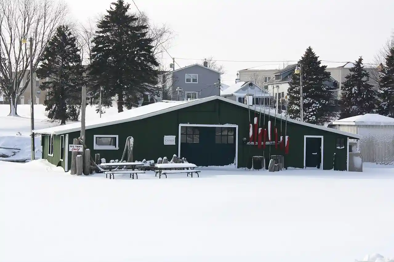 The Art Dettman Fishing Shanty is located in Algoma, Wisconsin. Read more on Wikipedia