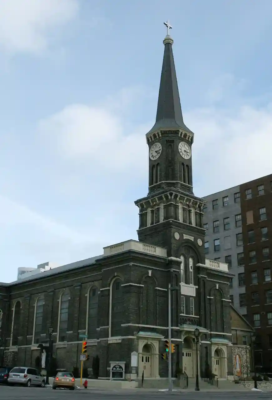 Old St. Mary's Church in Milwaukee, Wisconsin was built in 1846 and 1847. The parish was founded a year earlier, by German Catholic immigrants. It was the proto-German church of the Archdiocese of Milwaukee. The city had been incorporated only the year before, and Wisconsin had not yet become a state. Old St. Mary's is the oldest church still standing in the city. The building was listed on the National Register of Historic Places in 1973. Read more on Wikipedia