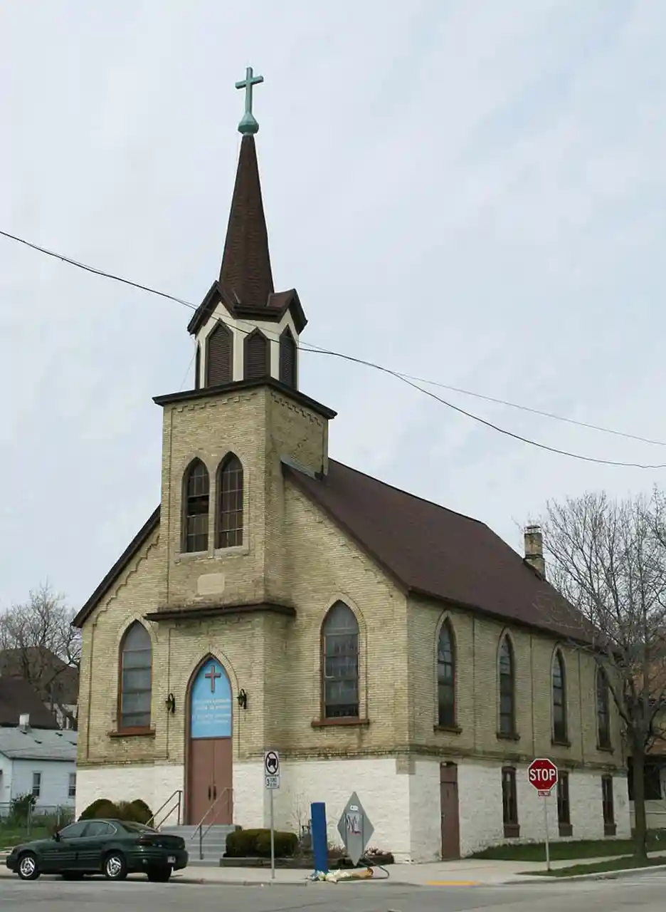 Salem Evangelical Church (also known as St. Michaels Ukrainian Catholic Church) is a modest Victorian Gothic church built in 1874 in Milwaukee, Wisconsin. with It was added to the National Register of Historic Places in 1987 for its architectural significance, and for being "the oldest surviving church building in the near south side... associated with a German congregation." Read more on Wikipedia