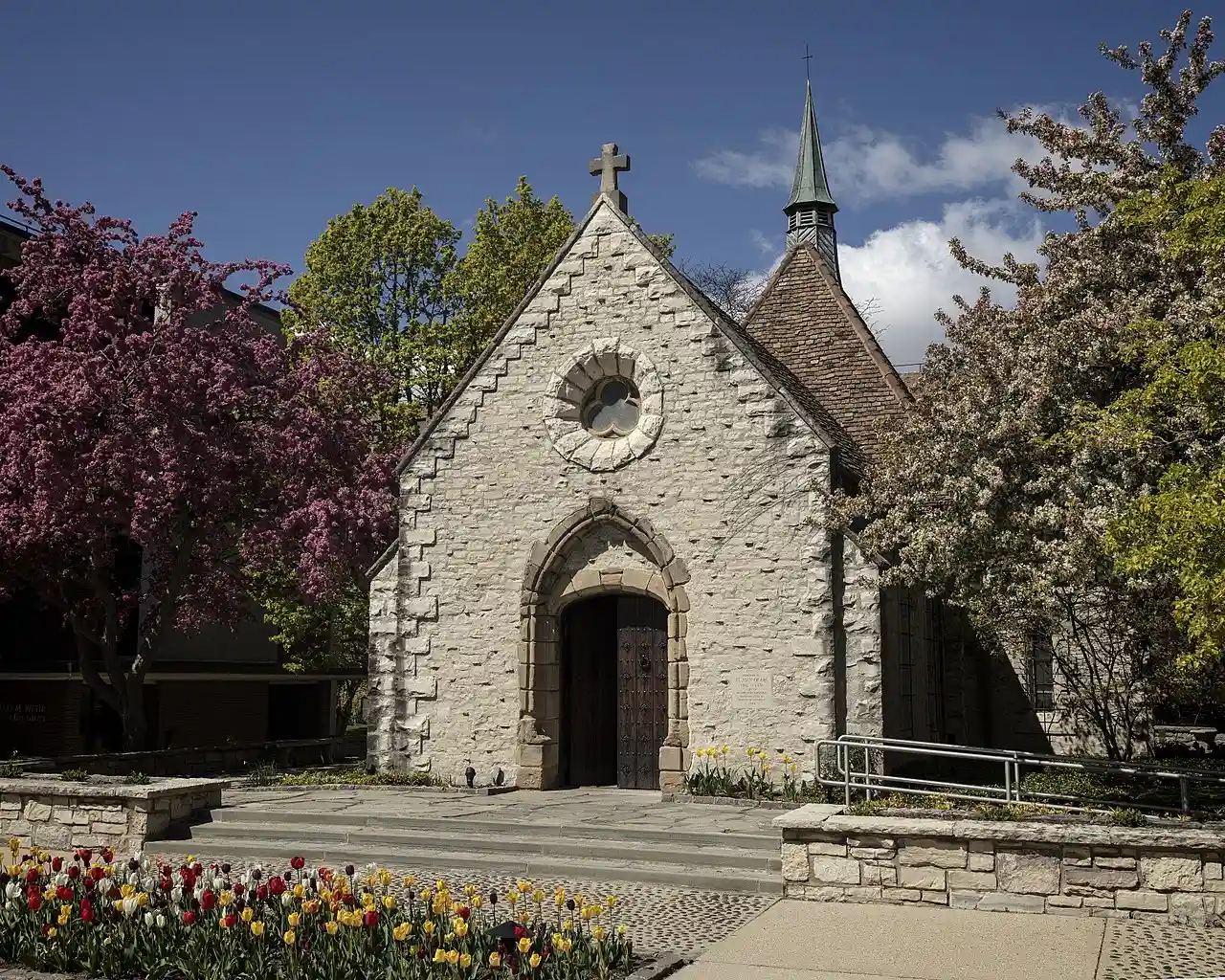 St. Joan of Arc Chapel is a Roman Catholic chapel today located in Milwaukee, Wisconsin, United States, on the campus of Marquette University, in the Archdiocese of Milwaukee. It was dedicated to Joan of Arc on 26 May 1966, after it had been moved from its previous location on Long Island, New York. It was originally built in the Rhône River Valley in France. Read more on Wikipedia