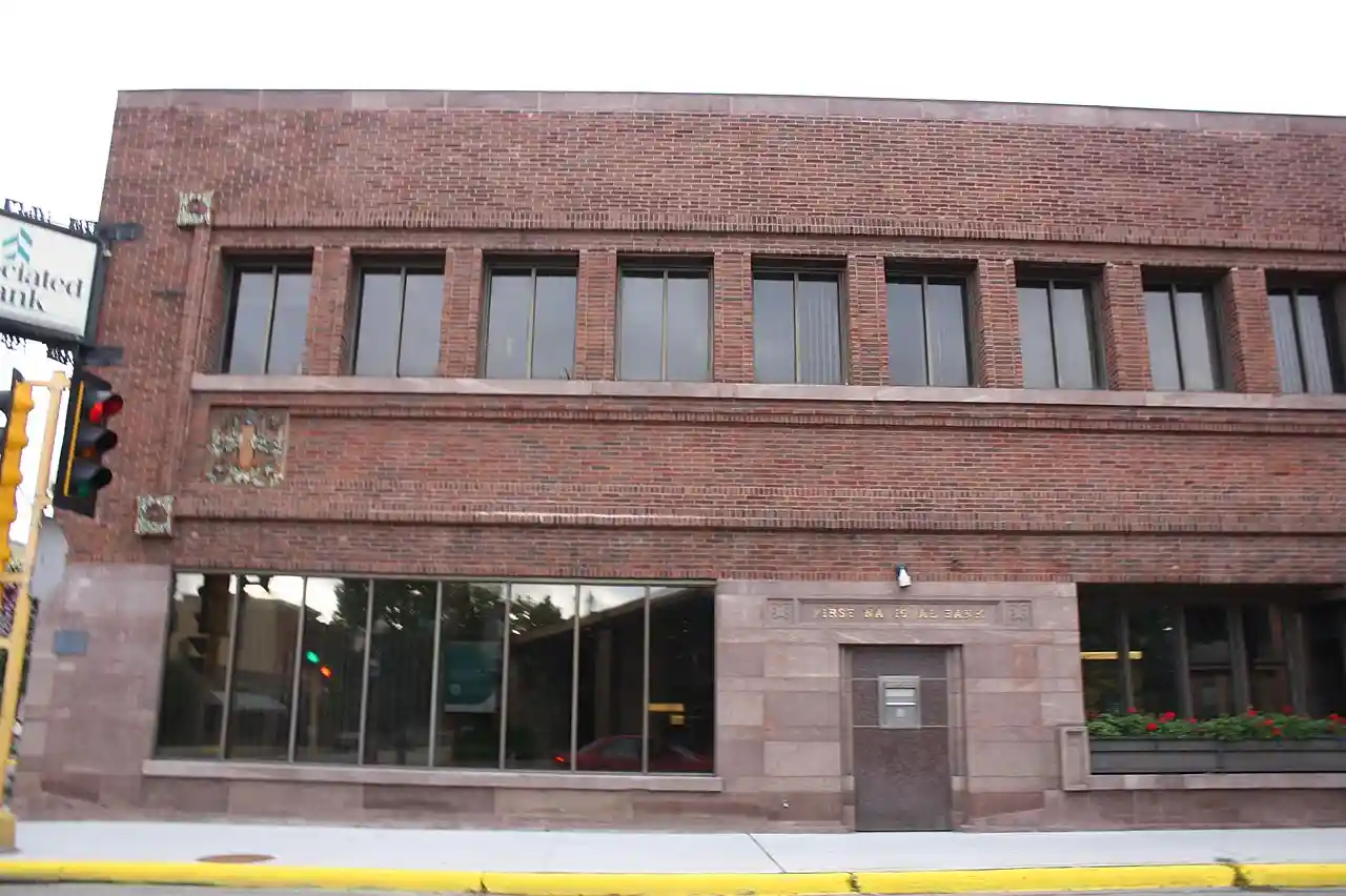 The First National Bank in Rhinelander, Wisconsin was built in 1911. It is a Sullivanesque building designed by architects Purcell & Elmslie. It was listed on the National Register of Historic Places in 1973. Read more on Wikipedia