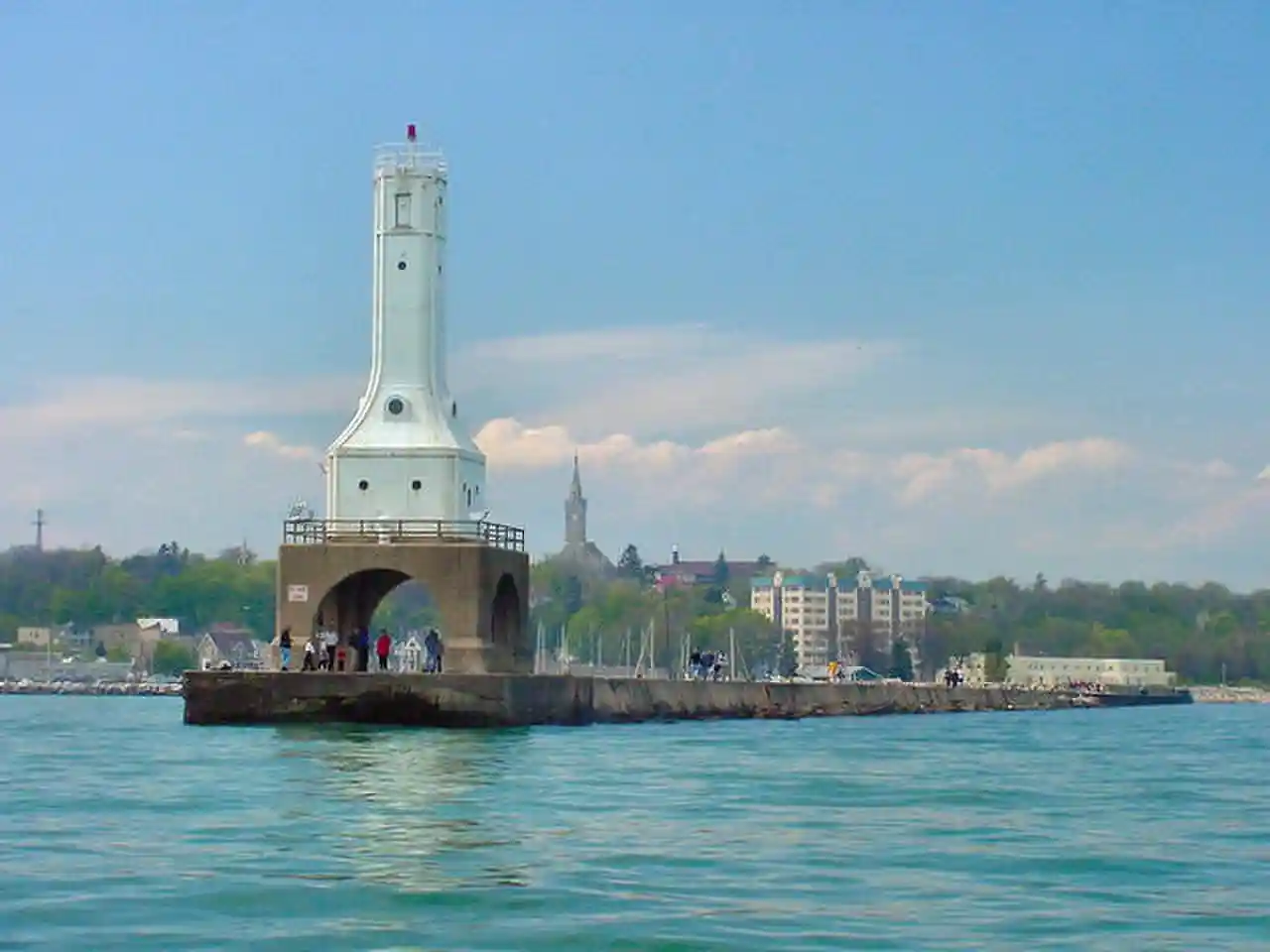 The Port Washington Breakwater Light is a lighthouse built in 1935 at the entrance to the Port Washington, Wisconsin harbor on Lake Michigan. The second tower at this location, it remains an active aid to navigation. It was listed on the National Register of Historic Places in 2018. Read more on Wikipedia