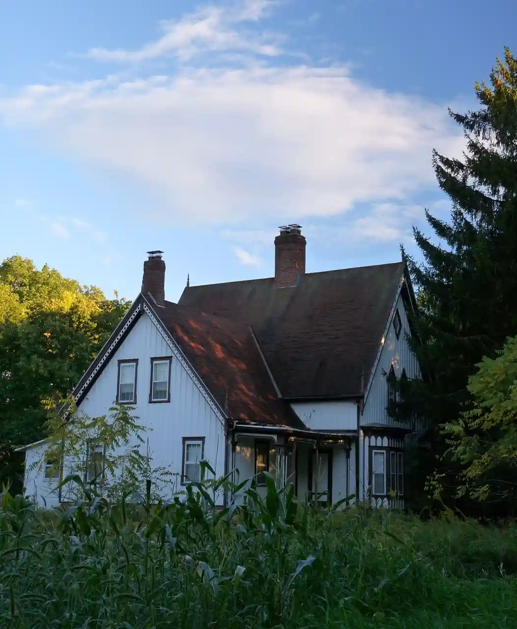 The A. G. Tuttle Estate is a historic house at S4456 Elizabeth Street in Baraboo, Wisconsin. The house was built in 1869 for A. G. Tuttle, a merchant and nursery owner who moved to Baraboo from New England. Tuttle was known for developing local varieties of fruit, especially apples; a Russian apple variety he grew brought him customers from throughout Wisconsin and Minnesota, and he was president of the Wisconsin Horticultural Society for several years. Tuttle's house is designed in the Carpenter Gothic style; the style was most popular in the Eastern United States, including Tuttle's native New England, in the mid-nineteenth century. The house has a cross-gabled plan featuring steep gable ends with decorative bargeboard along their eaves, board and batten siding, a porch supported by wooden columns at the front entrance, and a bay window with wooden corbelling. The house's interior includes a trompe-l'oeil of Venus, a landscape mural in the dining room that features the house itself, a plaster rosette on the parlor ceiling, and many detailed moldings. Read more on Wikipedia
