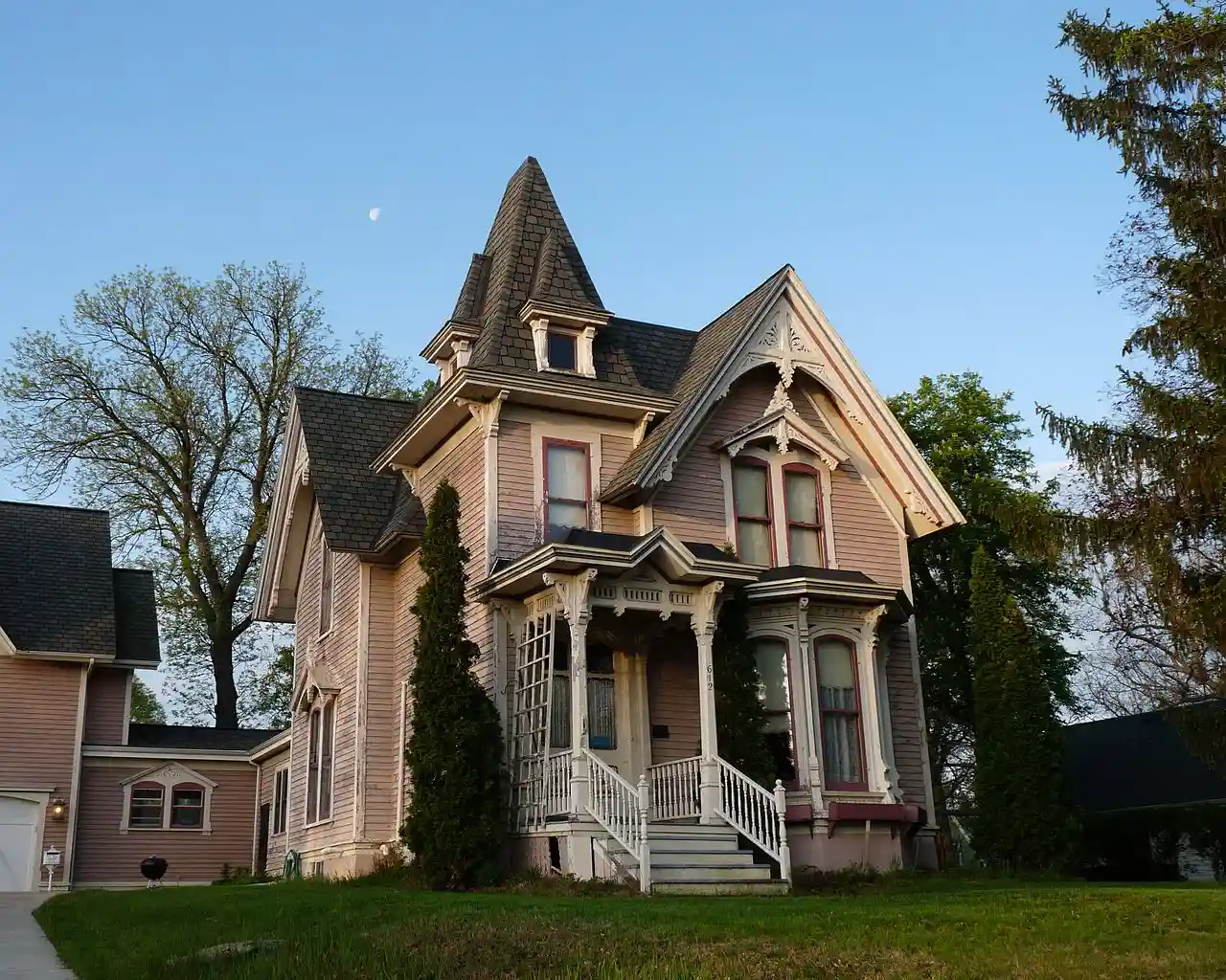 The Edward M. Hackett House is a historic house located at 612 East Main Street in Reedsburg, Wisconsin. It is designed in High Victorian Gothic style, with intricate bargeboards and bay windows. The house was built and originally owned by Edward M. Hackett, a lumberman, builder, and architect who also designed the Second Empire style City Hotel, now known as Touchdown Tavern. The Hackett House was added to the National Register of Historic Places on December 26, 1984. Read more on Wikipedia