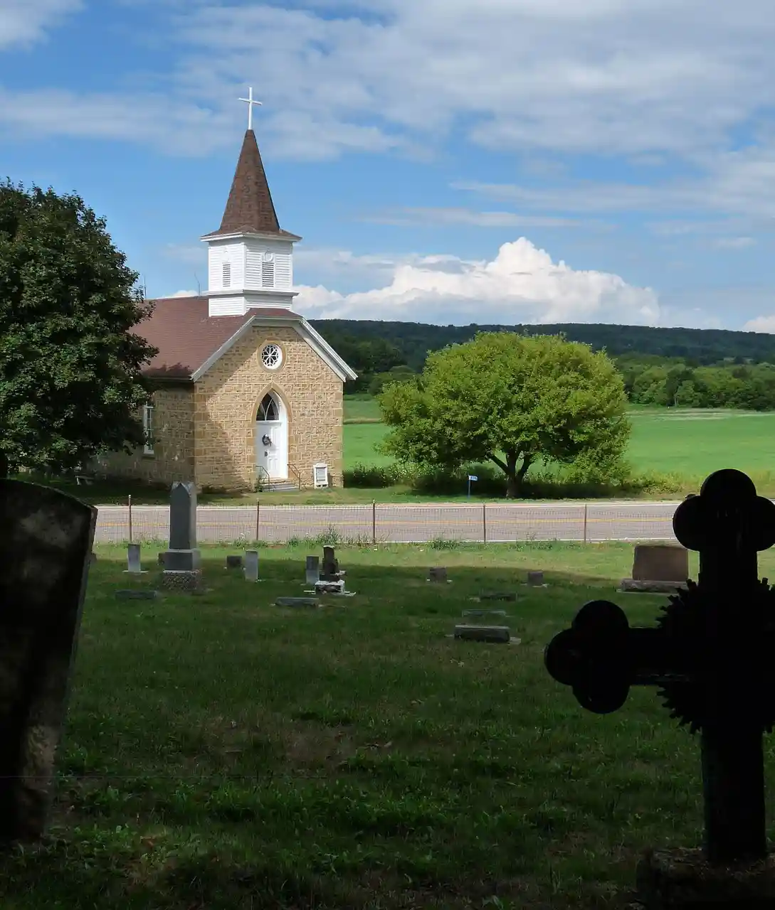 Our Lady of Loretto Roman Catholic Church and Cemetery is a historic rural church on County Highway C, 1 mile west of Denzer in Honey Creek, Wisconsin, United States. It was built in 1880 as a mission church for German settlers and was added to the National Register in 1990. Read more on Wikipedia