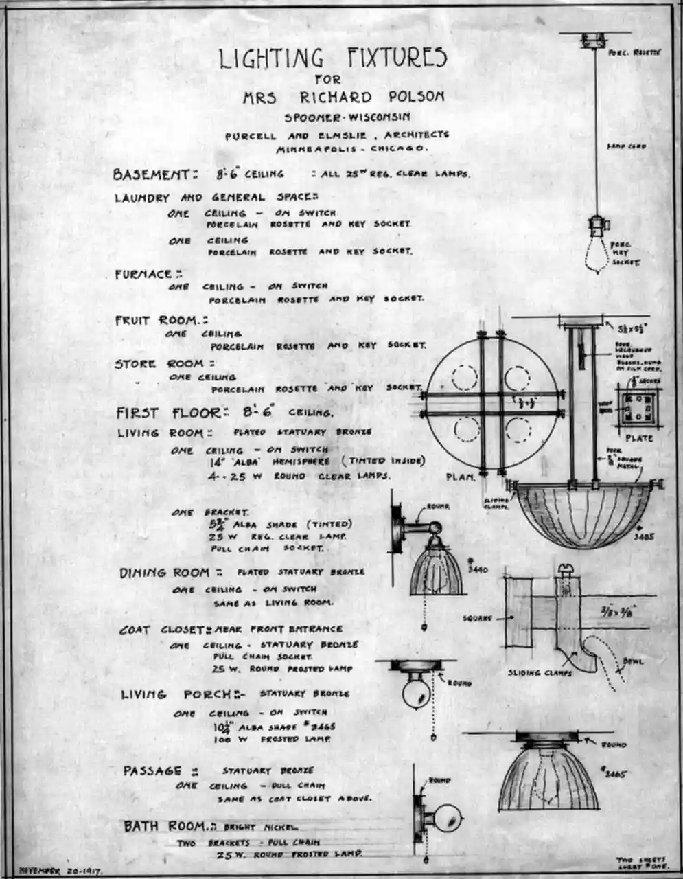 The Mrs. Richard Polson House located on Route 2 near Spooner, Wisconsin, United States, was built in 1917. It was designed by Prairie School architects Purcell & Elmslie in Beaux Arts style. It was built as a wedding gift from Mrs. Richard Polson for her son D. B. Brockett. It was listed on the National Register of Historic Places in 1984. Read more on Wikipedia