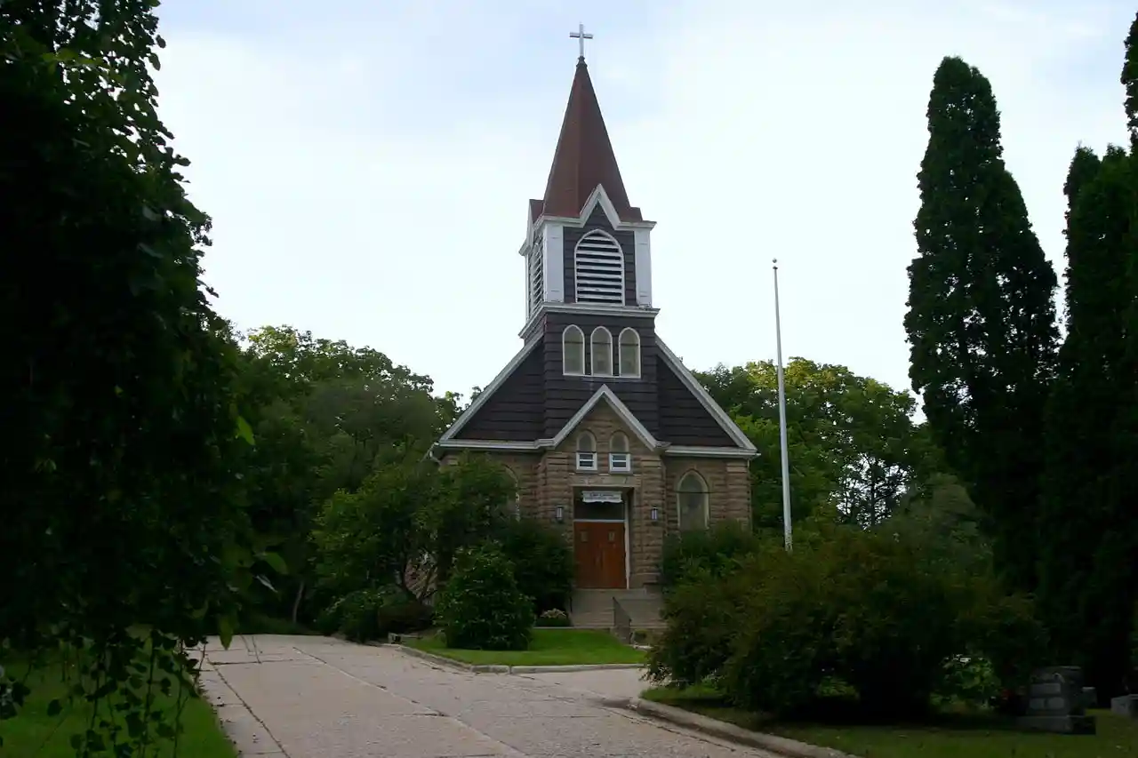 The Dansk Evangelical Lutheran Kirke is a Gothic Revival-styled Lutheran church built in 1910 by the Danish-speaking congregation in Hartland, Wisconsin, United States. It was listed on the National Register of Historic Places in 1988 and on the State Register of Historic Places the following year. Read more on Wikipedia