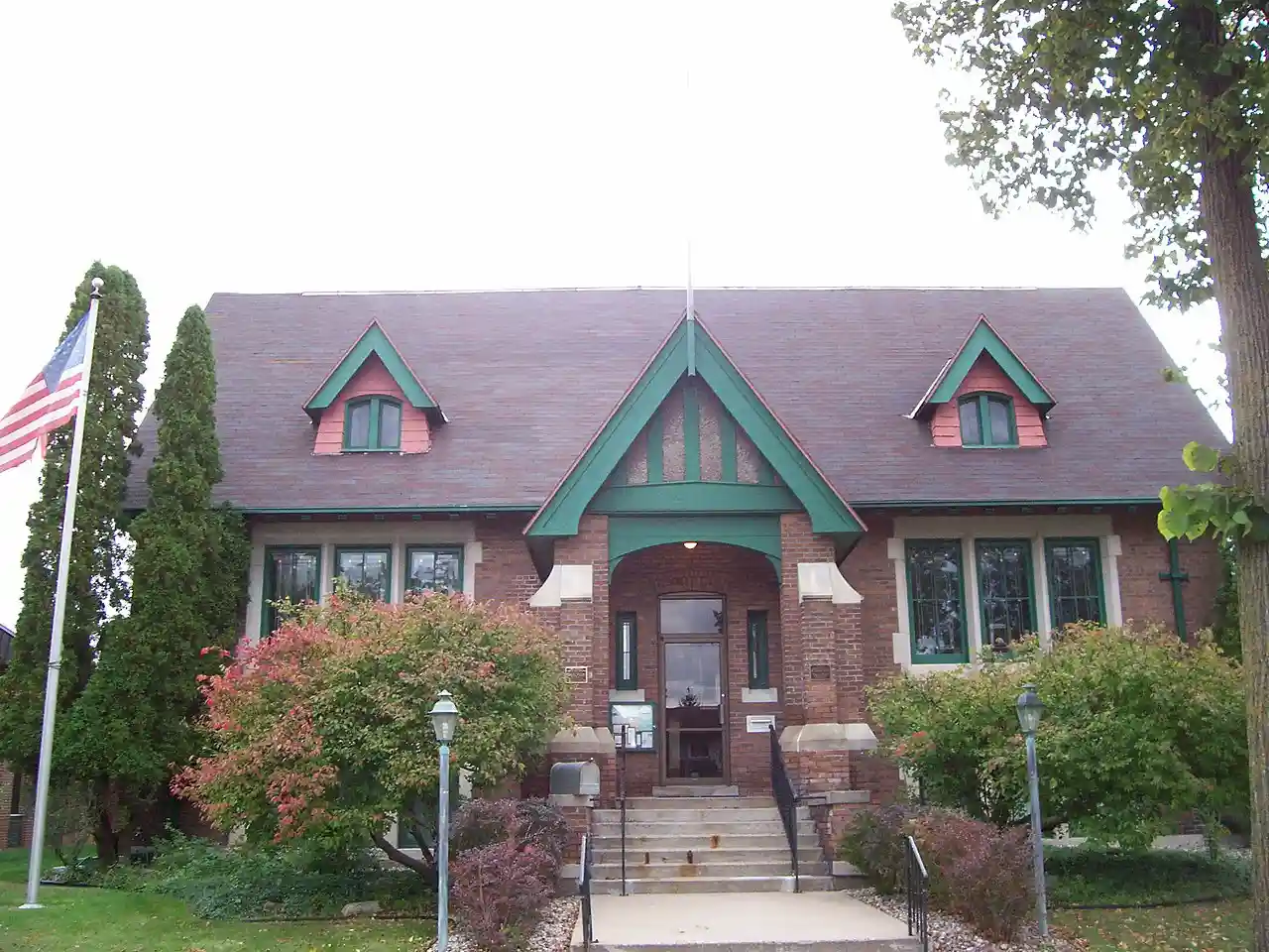 The Waupaca Free Public Library is a historic Carnegie library located on Main Street in Waupaca, Wisconsin, United States. It was built from 1913 to 1914 and designed by architects Parkinson and Dockendorff from La Crosse, Wisconsin. The design combines elements of English Tudor Revival and American Arts and Crafts architectural styles. The construction was funded with a grant from the Carnegie Corporation. It was listed on the National Register of Historic Places in 1996. Read more on Wikipedia