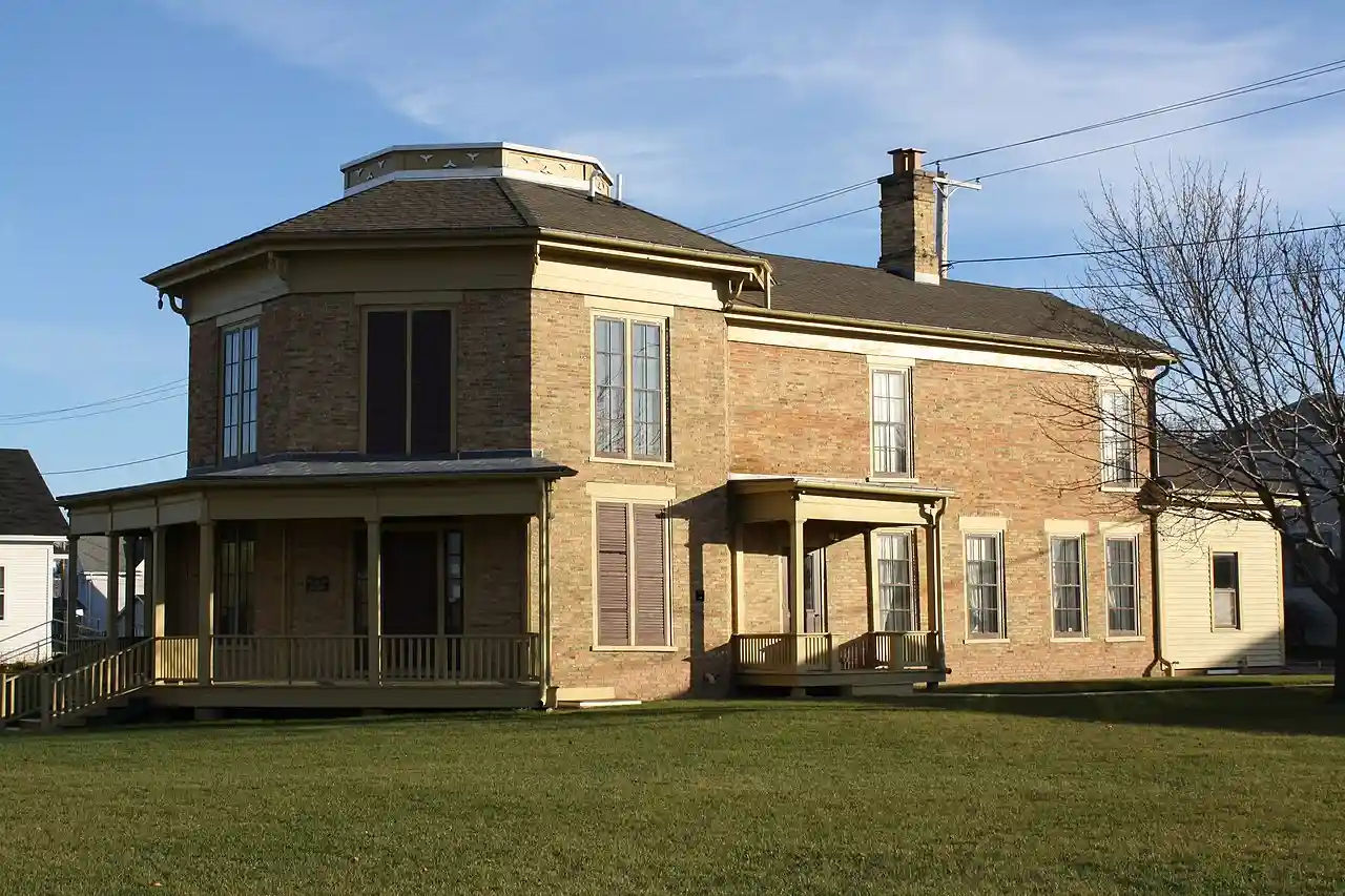 The Hiram Smith House is a buff brick, two-story octagonal house located in Neenah in the U.S. state of Wisconsin. The home features a porch on three sides. It was owned by Hiram Smith. The home is listed on the National Register of Historic Places. Read more on Wikipedia