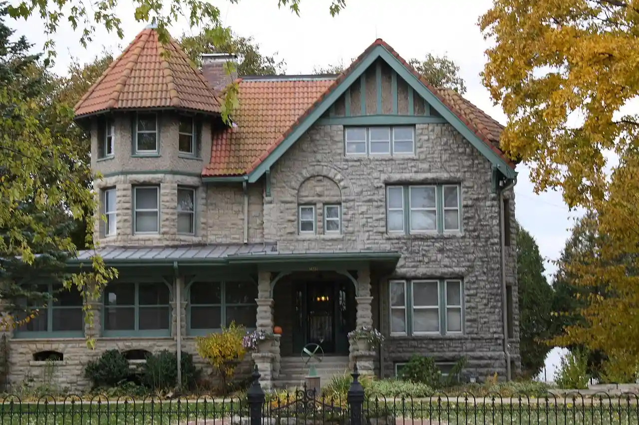 Robert Lutz House, sometimes referred to as Lutz Mansion, is a home located at 1449 Knapp Street in Oshkosh, Wisconsin, United States. Situated at the corner of Knapp Street and South Park Avenue, it was the home of Robert Lutz, owner of Lutz Brothers Stone Quarry. The home was designed by architect William Waters and built by C.R. Meyer Construction Company using stone from the Lutz-owned quarry.Nebel, R. "Oshkosh Residences: Part 6." William Waters Oshkosh Architect. Blogger.com, 29 Nov. 2011. Web. 12 June 2012.