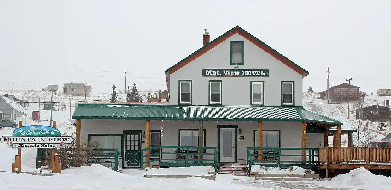 The Mountain View Hotel is a historic hotel near Centennial, Wyoming. It was built in 1907 as the railroad arrived in Centennial in the declining years of a gold mining boom. The hotel was part of a community development plan to develop businesses that did not depend on mining. featured 20 rooms and three baths, but the bathrooms were originally located in a separate stable building. The hotel was bought by Gustav and Anna Sundby in 1914, who operated the hotel into the 1940s. In the 1950s the hotel became an apartment house. Read more on Wikipedia