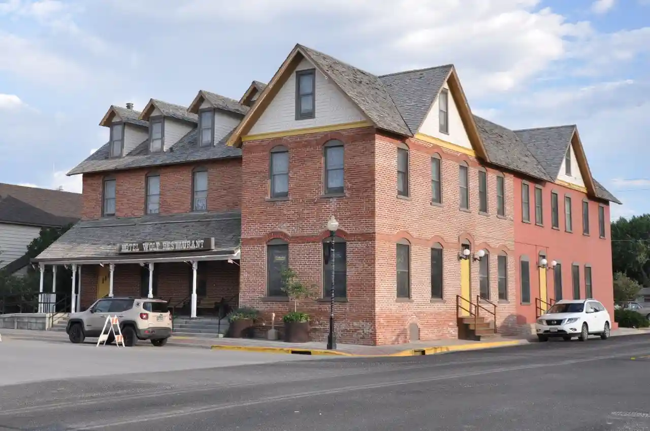 The Hotel Wolf is a hotel and restaurant in Saratoga, Wyoming. The two-story brick building was built at an estimated cost of $6000 in 1893 for Frederick G. Wolf, a German immigrant who had operated liquor stores in Wyoming. It opened for dining with a banquet on New Year's Eve 1893. The hotel opened on January 10, 1894. Two years after Wolf's death in 1910 his widow Christina sold the property to George W. Sisson for $10,000. with It continues to operate as a hotel and restaurant. Read more on Wikipedia