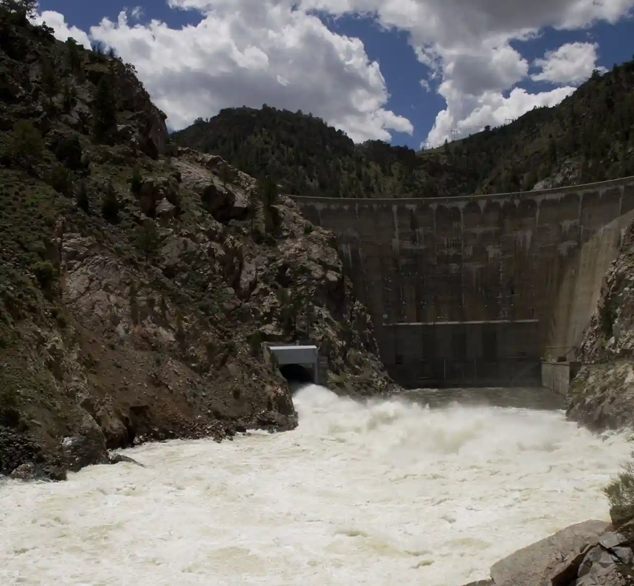 Seminoe Dam is a concrete thick-arch dam on the North Platte River in the U.S. state of Wyoming. The dam stores water for irrigation and hydroelectricity generation and is owned and operated by the U.S. Bureau of Reclamation. It is the uppermost dam on the North Platte River and is located directly upstream from the Kortes Dam. It lies in a narrow, isolated canyon formed by the North Platte cutting through the Seminoe Mountains about northeast of Rawlins. The dam forms Seminoe Reservoir, which covers more than when full. Seminoe State Park is adjacent to the reservoir. The small village of Seminoe Dam abuts the dam and reservoir and provides residence for the dam attendants and park services personnel. Read more on Wikipedia