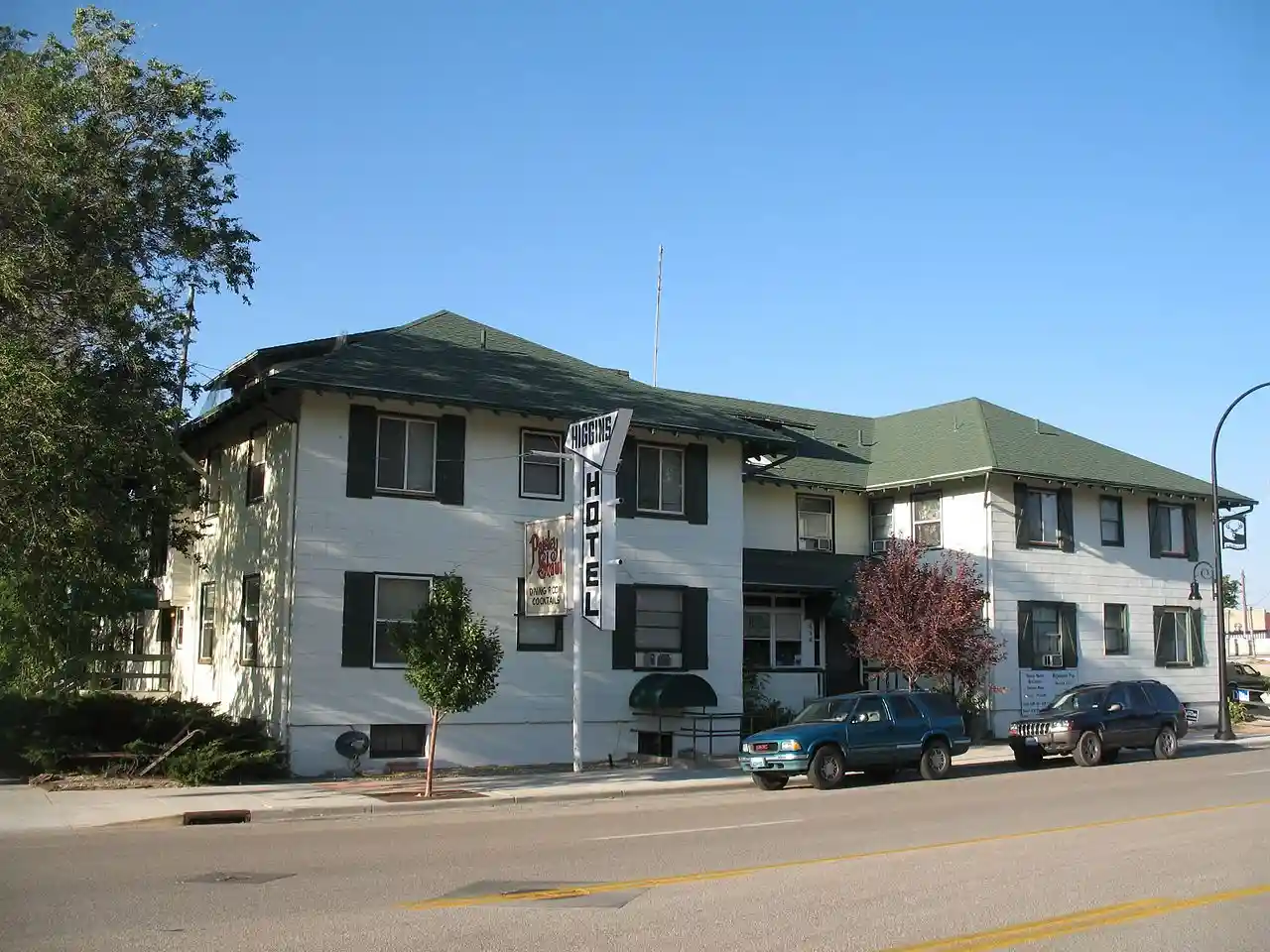 The Hotel Higgins, Tabor Hotel or Higgins Hotel was built in 1916-1917 during the oil boom in Glenrock, Wyoming. It was built for John E. Higgins, who was a local rancher, legislator and oil business investor, and his wife Josephine Amoretti Higgins. It was designed by architect Edward Reavill, and it opened on May 9, 1917. After the accidental death of Josephine in 1924 and the death of John in 1926 the property was disputed by their heirs. This was resolved in 1942 when the hotel was sold to Dr. and Mrs. Leonard Tabor at a tax sale, and the hotel became the Tabor Hotel. After several new owners the hotel became the Hotel Higgins again in 1978. with Read more on Wikipedia