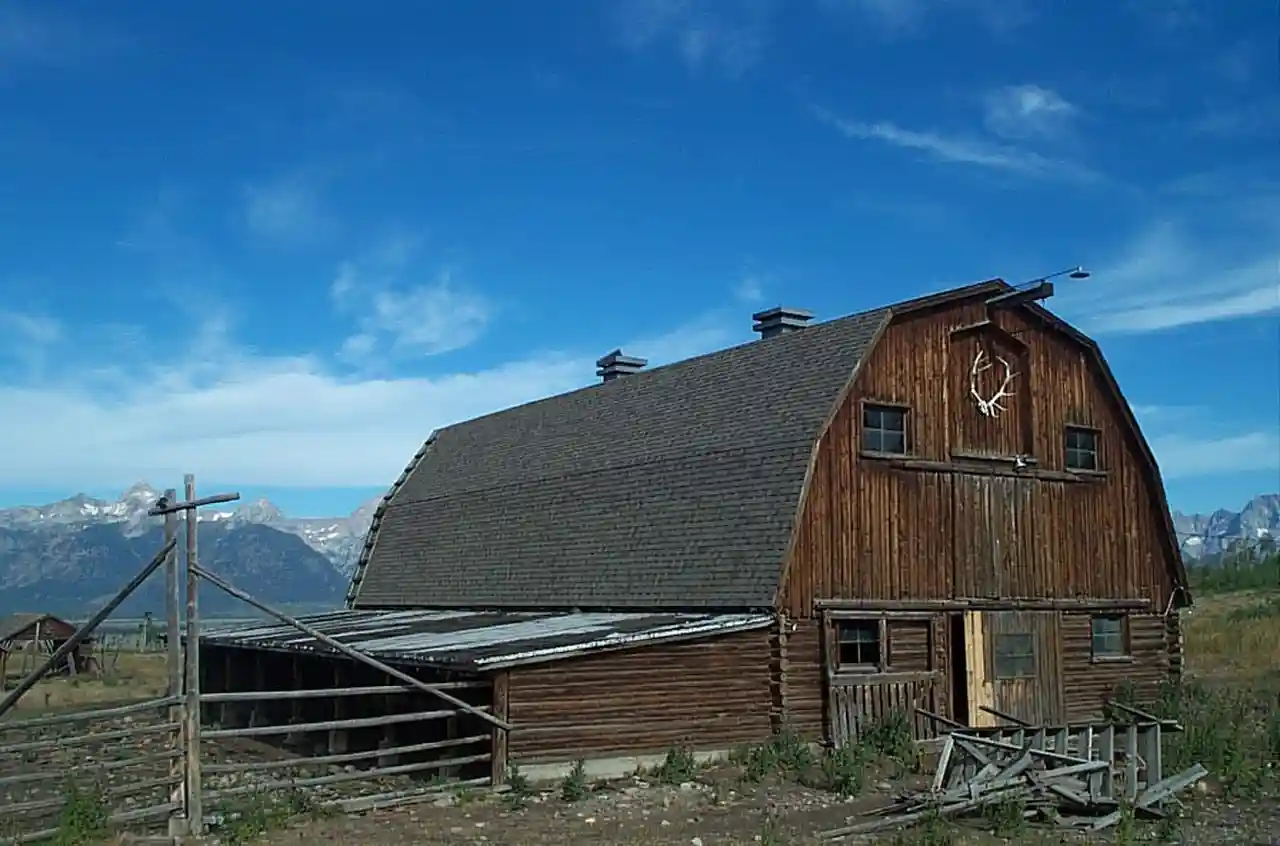 The Hunter Hereford Ranch was first homesteaded in 1909 by James Williams in the eastern portion of Jackson Hole, in what would become Grand Teton National Park. By the 1940s it was developed as a hobby ranch by William and Eileen Hunter and their foreman John Anderson. With its rustic log buildings it was used as the shooting location for the movie The Wild Country, while one structure with a stone fireplace was used in the 1963 movie Spencer's Mountain. The ranch is located on the extreme eastern edge of Jackson Hole under Shadow Mountain. It is unusual in having some areas of sagebrush-free pasture. Read more on Wikipedia