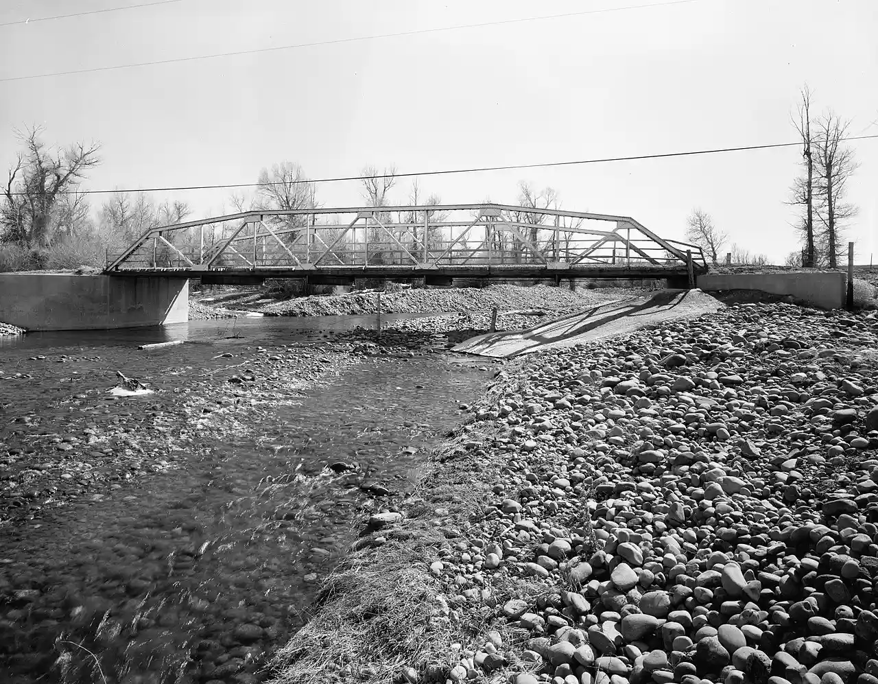 The ERT Bridge over Blacks Fork near Fort Bridger, Wyoming, was listed on the National Register of Historic Places in 1985 as part of a thematic study on early 20th century steel truss bridges in Wyoming. The ERT Bridge is a Warren pony truss bridge spanning with a width of . Set on concrete abutments, the ERT Bridge was built around 1920 by Uinta County. It is an example of a transitional design from locally built bridges to standardized State designs Read more on Wikipedia