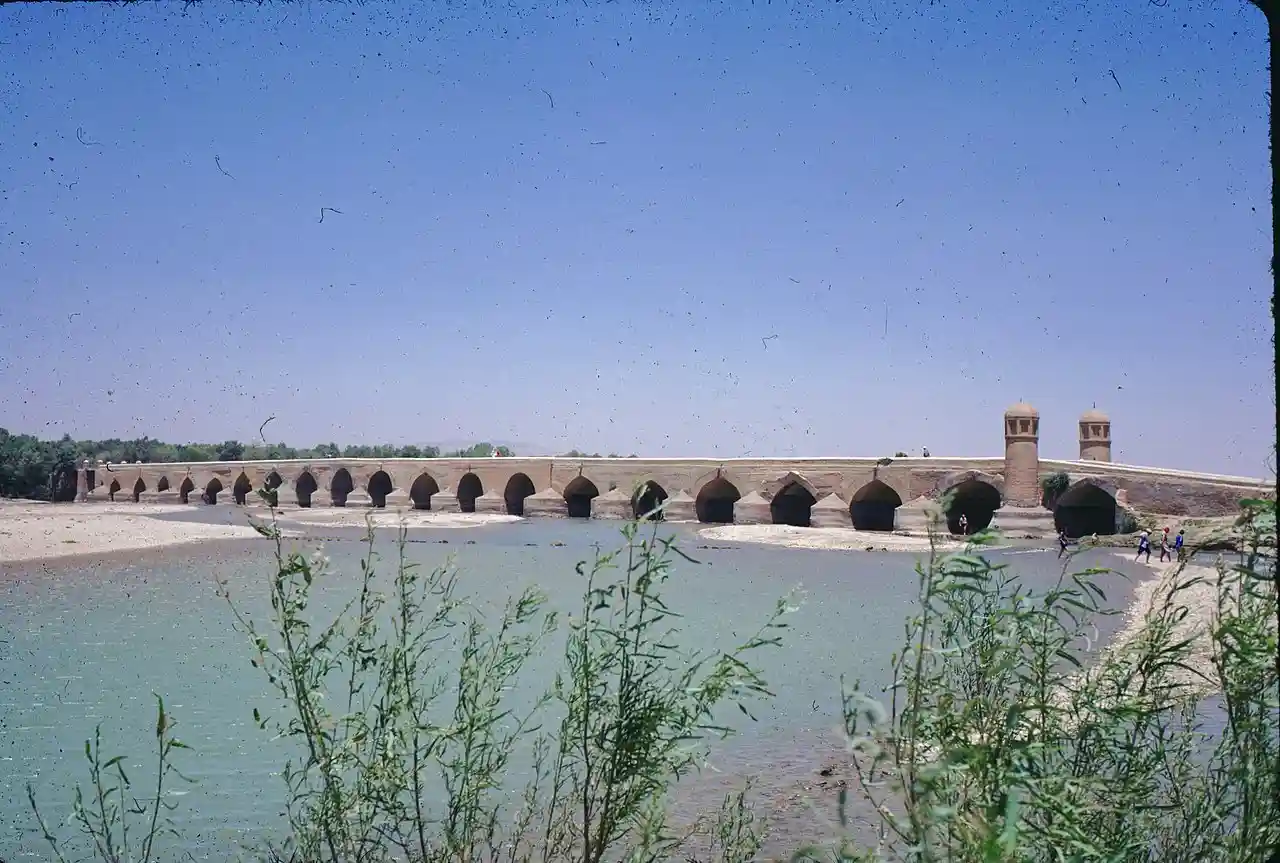 Malan Bridge, also called Pul-i-Malan (Dari: ), is a two-lane arched bridge over the Hari River, connecting Injil District with Guzara District, both in Afghanistan. It was built around 1110 AD. The bridge is located south of Herat's old city and downstream or west from Pul-i Pushtu. It is currently made up of 22 arches and has survived several floods that have washed away other bridges crossing the Hari. It is long, wide, and high. Read more on Wikipedia