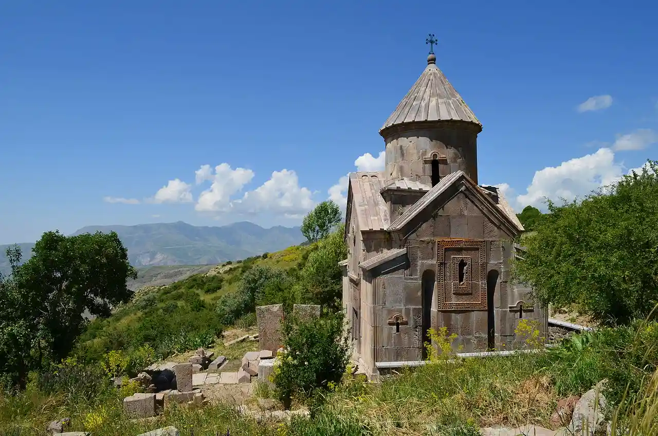 Tsaghats Kar Monastery () is an Armenian monastery located along the mountain foothills overlooking the Yeghegis River, between the villages of Yeghegis (6 km northeast) and Horbategh in the Vayots Dzor Province of Armenia. The monastery is located within walking distance of the fortress of Smbataberd. Read more on Wikipedia
