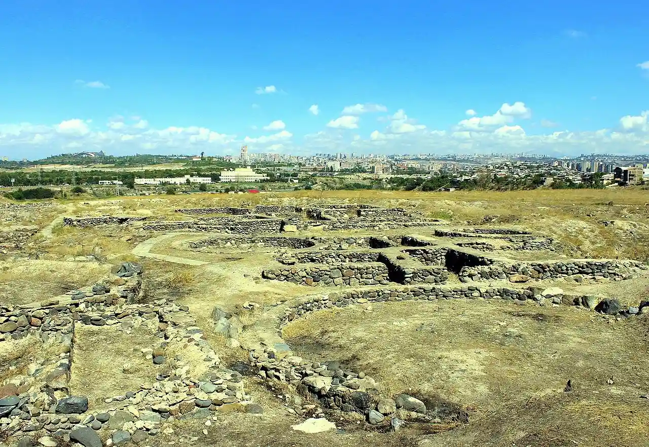 The Shengavit Settlement (, Shengavit' hənavayr) is an archaeological site in present-day Yerevan, Armenia located on a hill south-east of Yerevan Lake. It was inhabited during a series of settlement phases from approximately 3000 BC cal to 2500 BC cal in the Kura Araxes (Shengavitian) Period of the Early Bronze Age and irregularly re-used in the Middle Bronze Age until 2200 BC cal. The town occupied an area of six hectares. It appears that Shengavit was a societal center for the areas surrounding the town due to its unusual size, evidence of surplus production of grains, and metallurgy, as well as its monumental 4 meter wide stone wall. Three smaller village sites of Moukhannat Tepe, Khorumbulagh, and Tairov have been identified and were located outside the walls of Shengavit. Its pottery makes it a type site of the Kura-Araxes or Early Transcaucasian Period and the Shengavitian culture area.Hakop Simonyan, Shengavit: an Early Transcaucasian Site in Yerevan on the Ararat Plain, Republic of Armenia Read more on Wikipedia