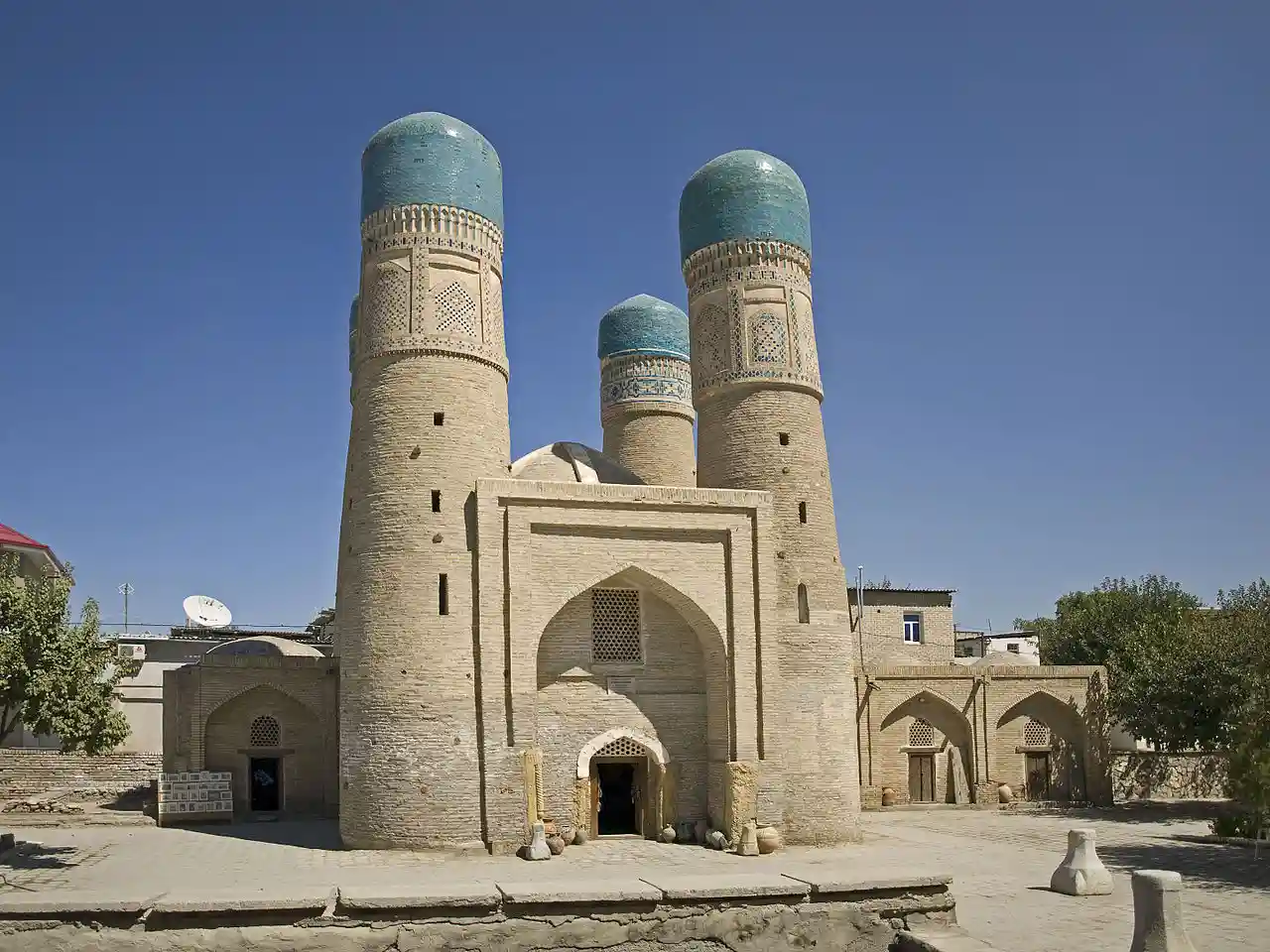Chor Minor (Char Minar ), alternatively known as the Madrasah of Khalif Niyaz-kul, is a historic gatehouse for a now-destroyed madrasa in the historic city of Bukhara, Uzbekistan. It is located in a lane northeast of the Lyab-i Hauz complex. It is protected as a cultural heritage monument, and also it is a part of the World Heritage Site Historic Centre of Bukhara. In Persian, the name of the monument means "four minarets", referring to the building's four towers. Read more on Wikipedia