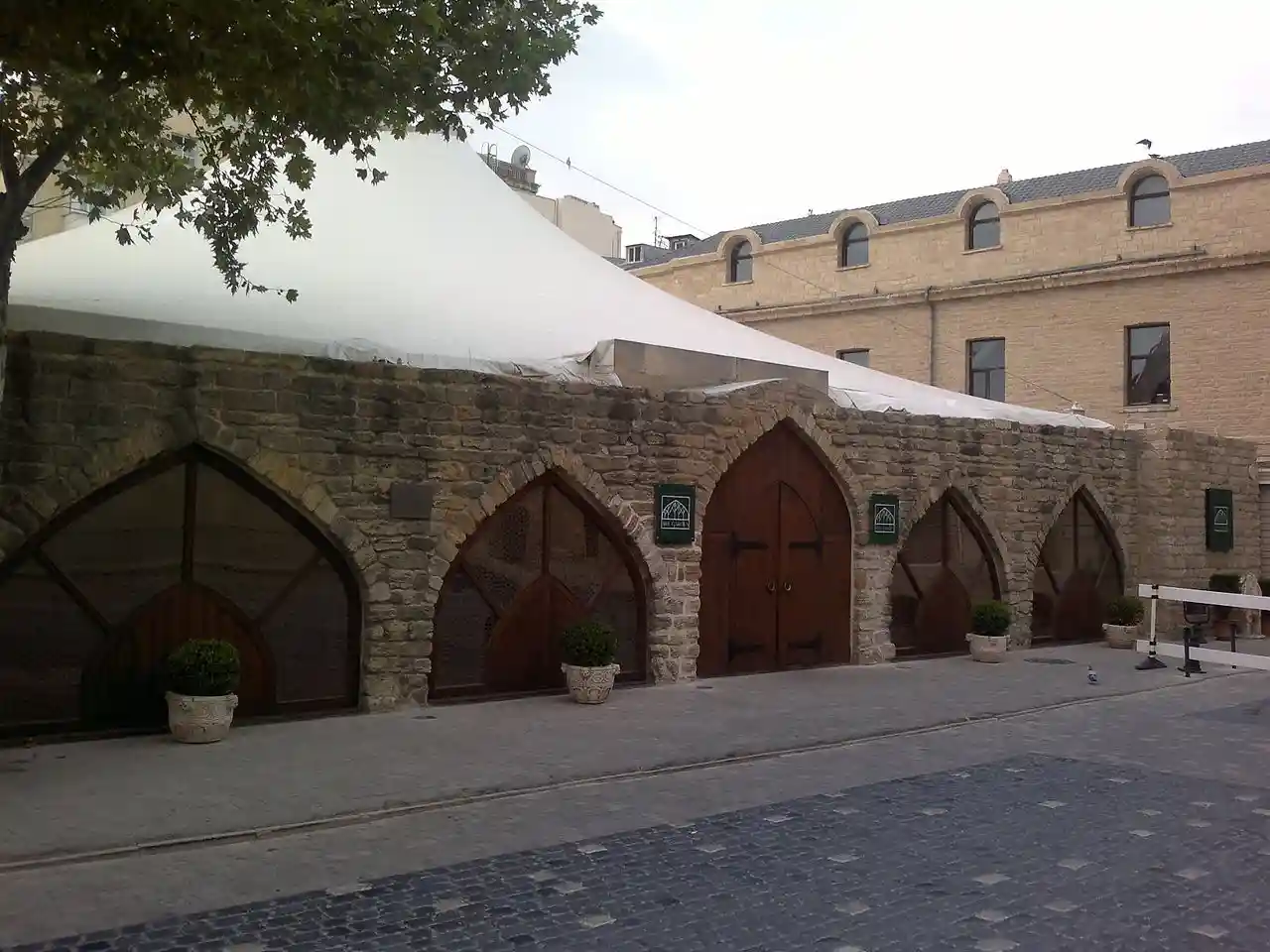 The Small Cravanserai in Baku, Azerbaijan has a square shape and an inner quadrangular courtyard with cut corners. This caravanserai was built in the 12th century. There is a long balcony which surrounds the building of the caravanserai. The north and south entrances of the caravanserai are portal-shaped. During the Middle Ages, there was a main entrance from the sea. The caravanserai has a defensive construction and two floors on the southern side.Museums, Reserves, Galleries of Baku – National Tourism Promotion Bureau, 2017. Read more on Wikipedia