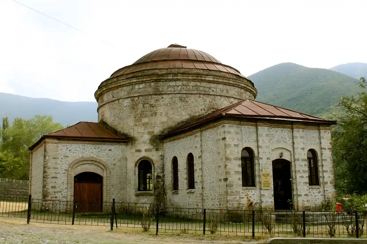 Nukha Three Saints Church (; ), Nukha Holy Church () or Round Temple () is former Russian Orthodox church building located in Shaki, Azerbaijan near Khan's Palace, named after Cappadocian Fathers. Read more on Wikipedia