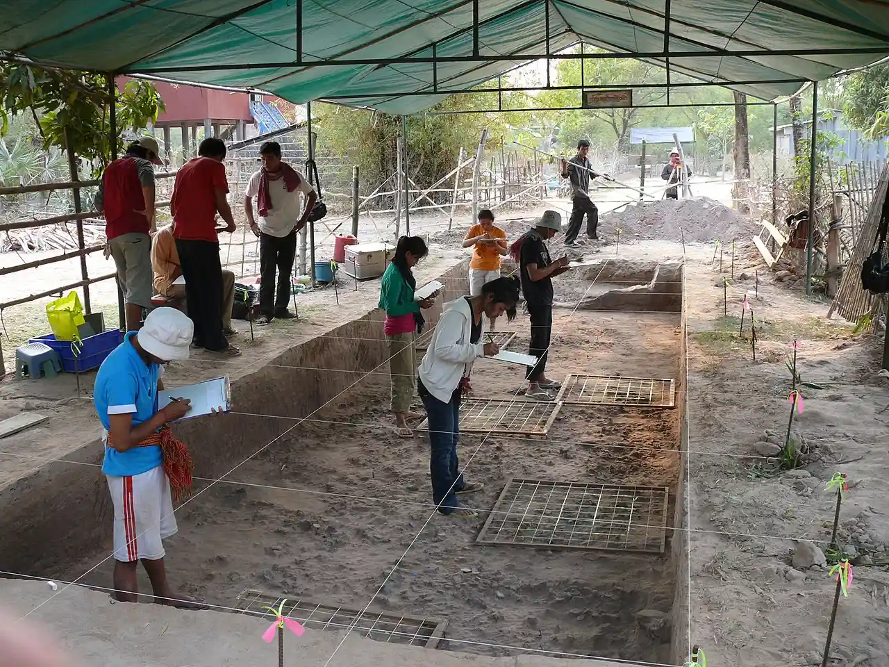 Prohear is an archaeological site from the Early Iron Age located in the Prey Veng province of Cambodia between the capital city of Phnom Penh and the border with Vietnam. By the time the site became known to archaeologists in 2007, it had been heavily looted and few archaeological materials remained. Prohear is known for its burials and uniquely rich array of grave goods including numerous precious metal artifacts. A number of the artifacts excavated at the site have contributed to the study of trade routes that connected Prohear to the rest of Southeast Asia. Read more on Wikipedia