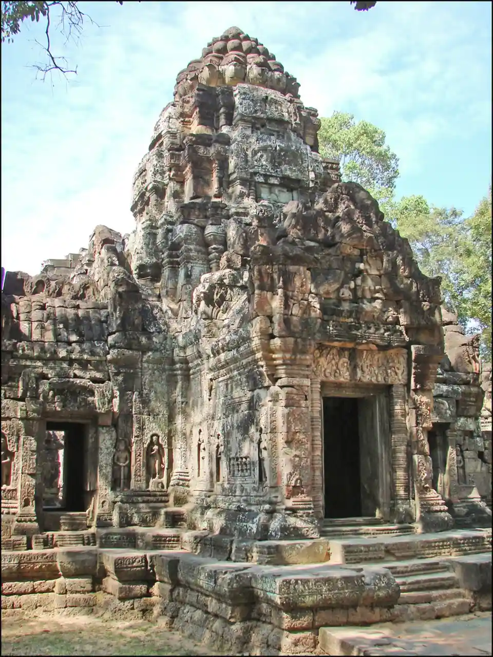 Ta Som () is a small temple at Angkor, Cambodia, built at the end of the 12th century for King Jayavarman VII. It is located north east of Angkor Thom and just east of Neak Pean. The King dedicated the temple to his father Dharanindravarman II (Paramanishkalapada) who was King of the Khmer Empire from 1150 to 1160. The temple consists of a single shrine located on one level and surrounded by enclosure laterite walls. Like the nearby Preah Khan and Ta Prohm the temple was left largely unrestored, with numerous trees and other vegetation growing among the ruins. In 1998, the World Monuments Fund (WMF) added the temple to their restoration program and began work to stabilise the structure to make it safer for visitors. Read more on Wikipedia