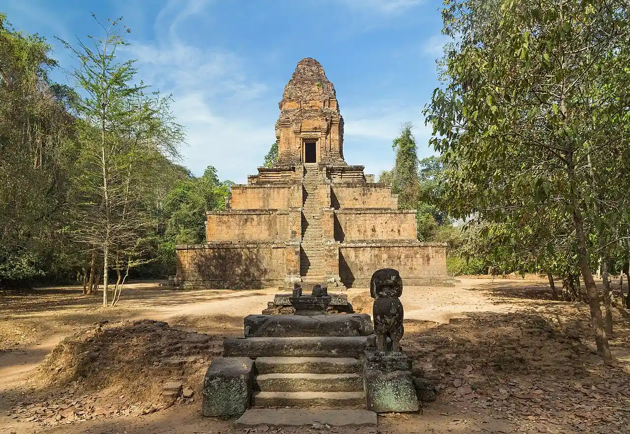 Baksei Chamkrong (; , , ) is a small Hindu temple located in the Angkor complex (Siem Reap, Cambodia). It is dedicated to Shiva and used to hold a golden image of him. The temple can be seen on the left side when entering Angkor Thom at the southern gate. It was dedicated to Yasovarman by his son, King Harshavarman I.Higham, C., 2001, The Civilization of Angkor, London: Weidenfeld & Nicolson, The temple was completed by Rajendravarman II (944–968). Read more on Wikipedia