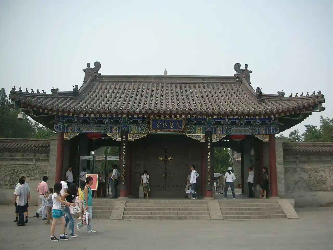 Daci'en Temple () is a Buddhist temple located in Yanta District, Xi'an, Shaanxi. The temple is the cradle of East Asian Yogācāra in China. It is notable for the Giant Wild Goose Pagoda. The pagoda was originally built by the monk Xuanzang, whose pilgrimage to India inspired the novel Journey to the West. Alongside Daxingshan Temple and Jianfu Temple, it was one of the three sutras translation sites () in the Tang dynasty. Read more on Wikipedia