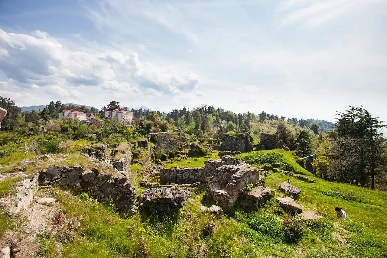 Petra () was a fortified town on the eastern Black Sea coast, in Lazica in what is now western Georgia. In the 6th century, under the Byzantine emperor Justinian I, it served as an important Eastern Roman outpost in the Caucasus and, due to its strategic location, became a battleground of the 541–562 Lazic War between Rome and Sasanian Persia (Iran). Mainstream scholarly opinion identifies Petra with a ruined settlement of Late Antiquity at the village of Tsikhisdziri in Adjara, southwestern Georgia. Read more on Wikipedia